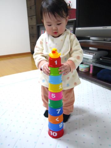 パパがカップを渡していったらどんどん上手に積み重ねて完成しました!!!