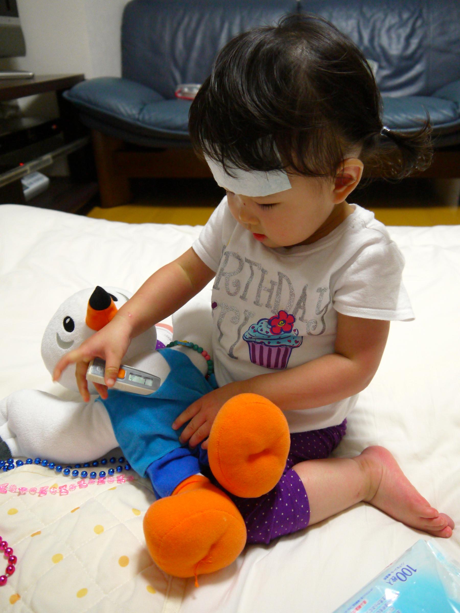 まだまだ熱が下がりません...苦しそうな咳もしていますが、家では元気そうに遊んでいます。