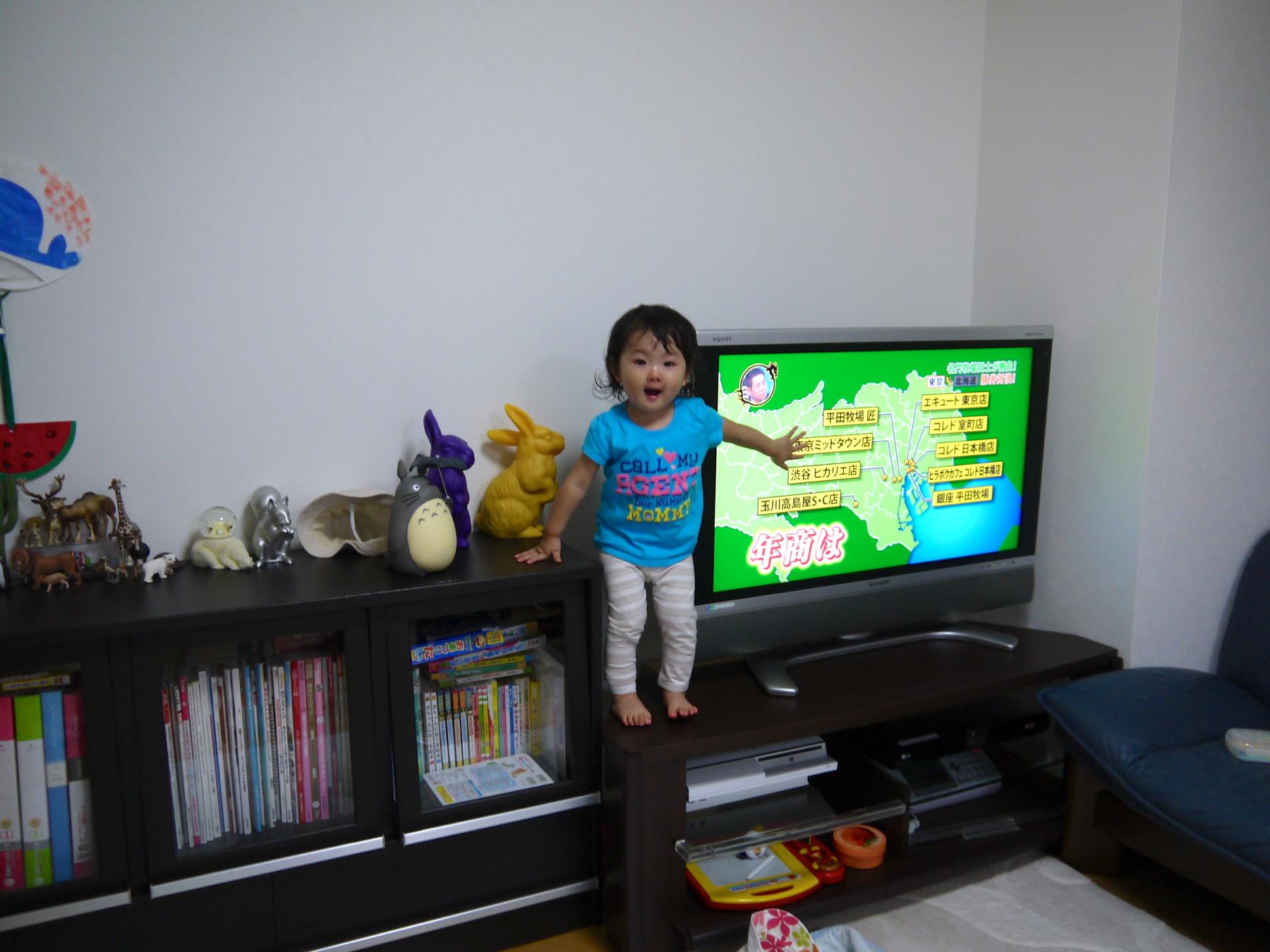 ママがキッチンで片付けをしているとき、樹花はテレビ台にのぼって「アンパン!」と大きな声で叫んでいました(笑) テレビにアンパンマンは映っていません...