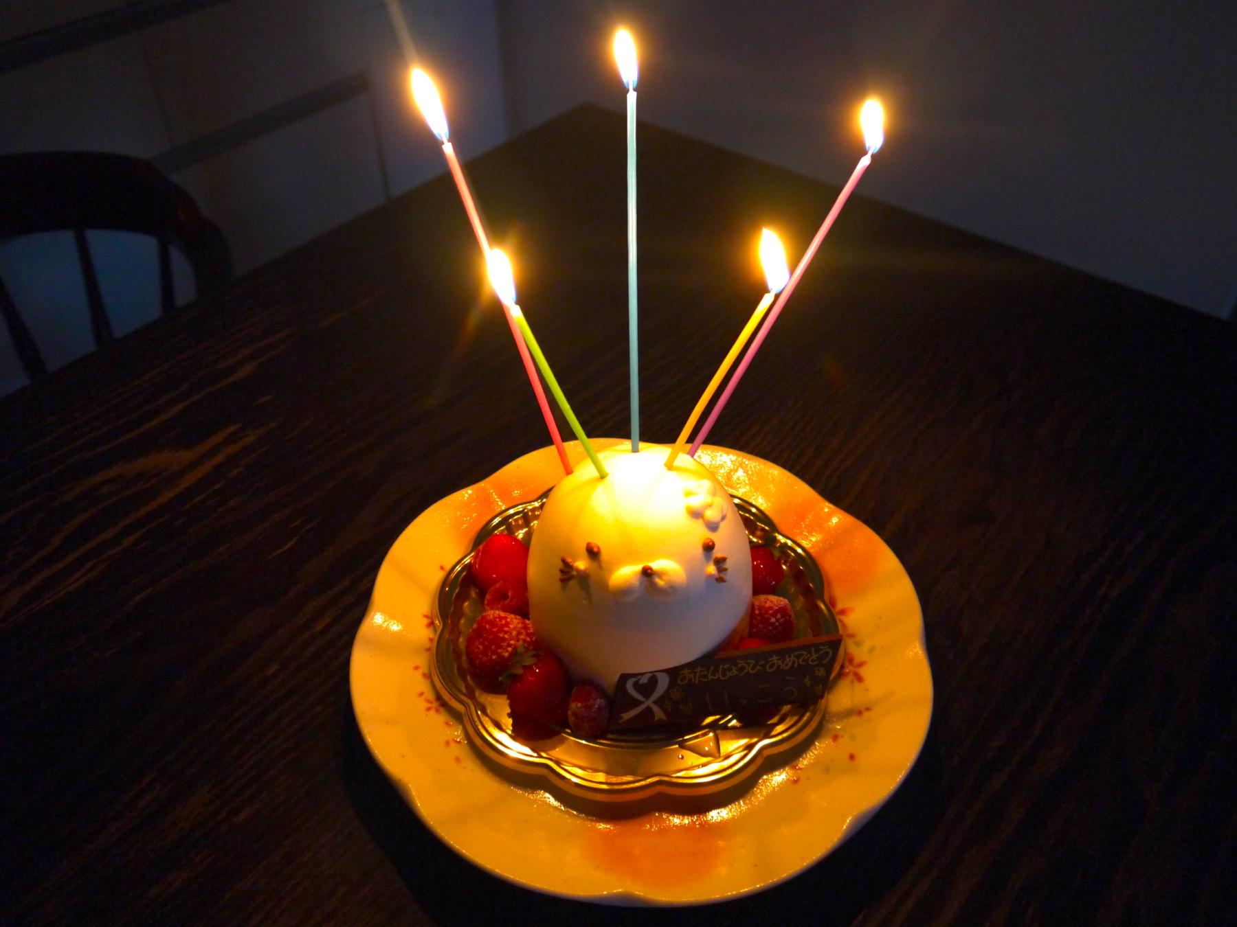 ロウソクに火をつけて、茉弥 & 伶 & 樹花で歌ったBDソングのムービーを流しながらもう一度歌ってみんなでふ〜っと火を消しました。