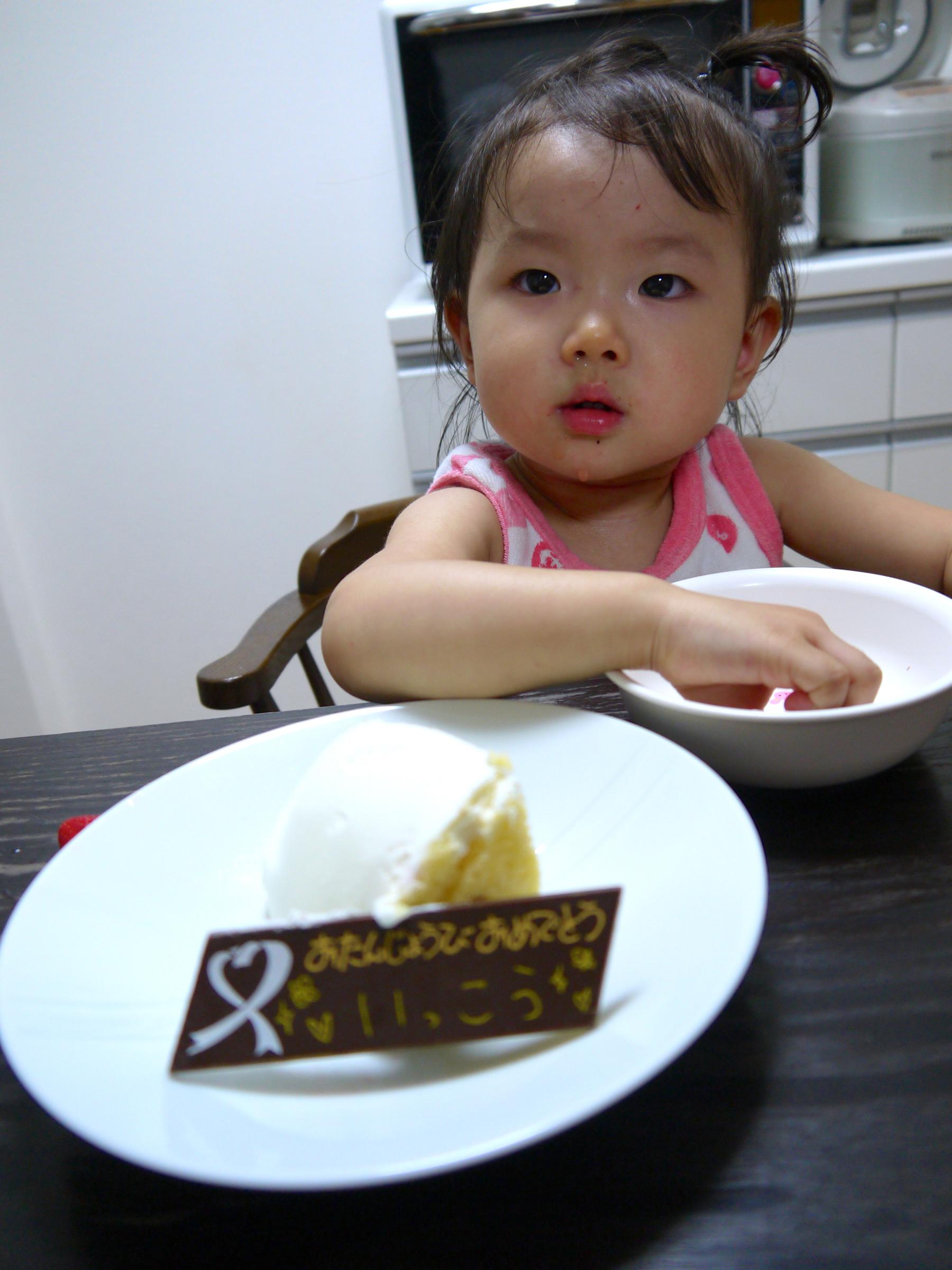 まだケーキが食べられないこのちゃんはイチゴのところだけ食べました。