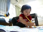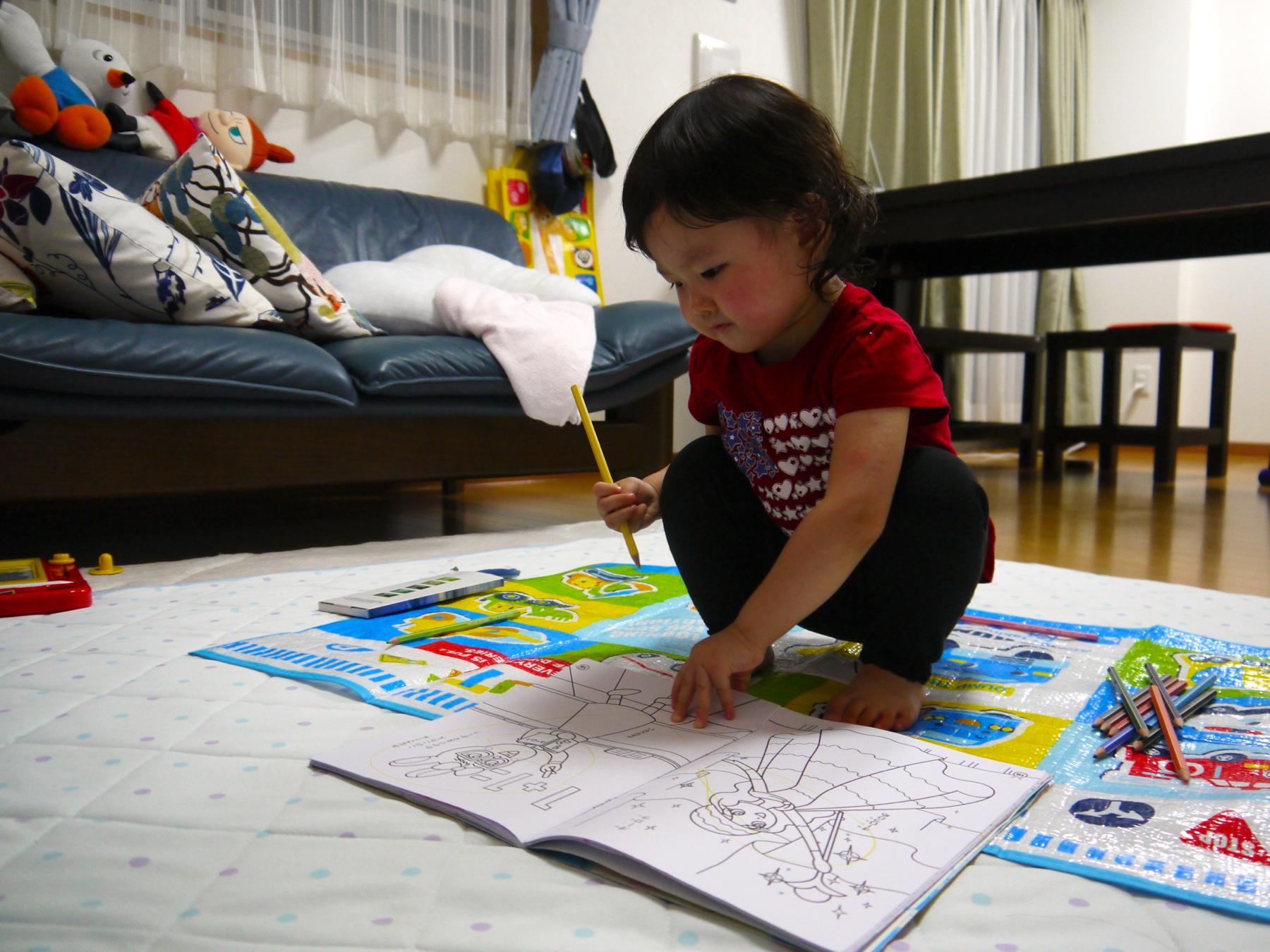 でも!アンパンマンのぬり絵を渡すと気に入ったのか、集中して一生懸命色をつけていました〜