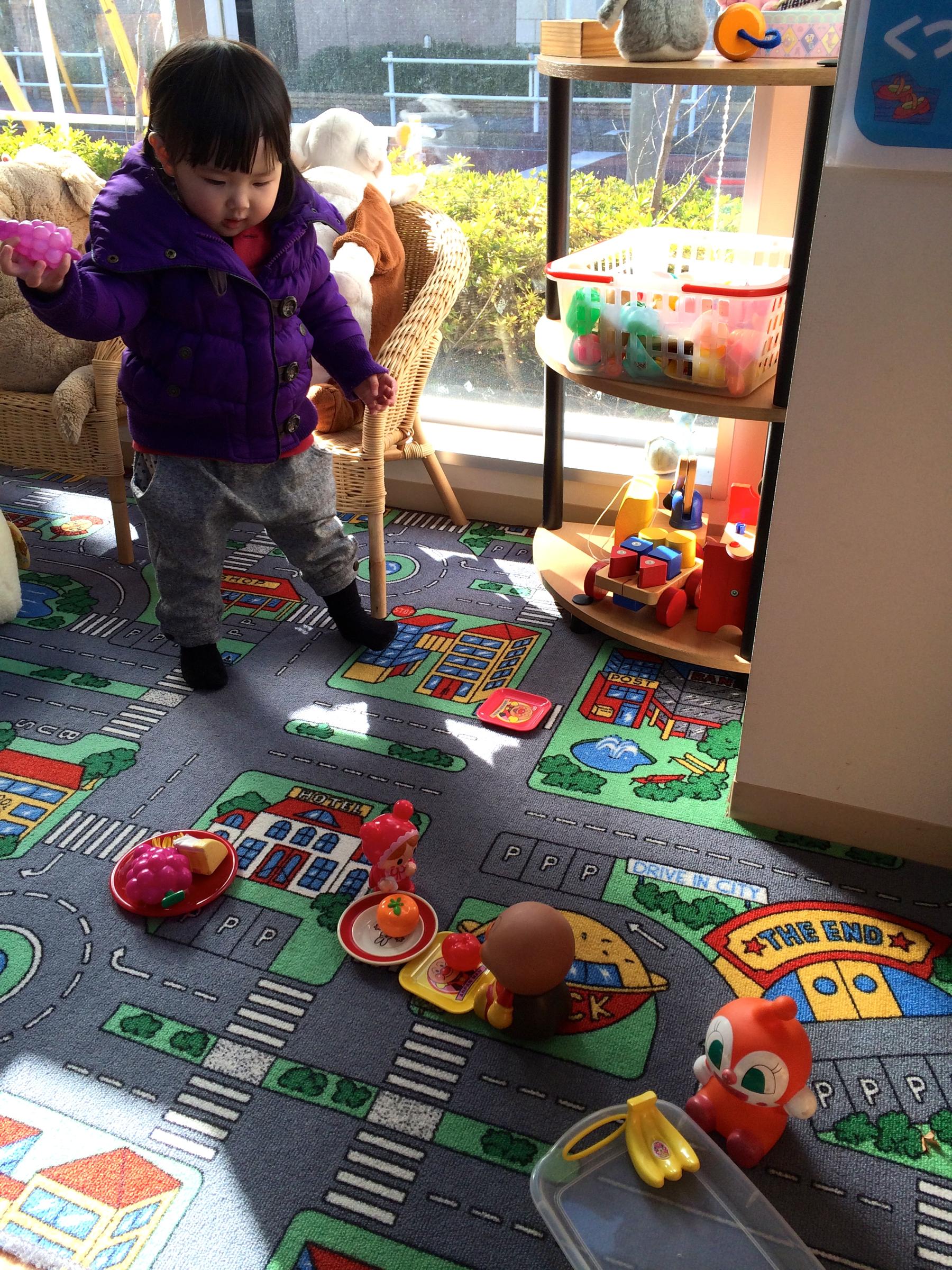 病院のあとのお楽しみ。薬局のキッズコーナーにはおもちゃがたくさんあるのでお気に入りの場所です。薬を受け取って帰ろうと言ってもなかなか帰りたがらなくていつも困っています...最後は抱きかかえて帰るのでいつもぎゃーぎゃー泣きながらここを出ることになります。