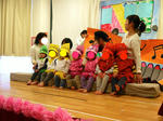 1歳児クラスは4人のお友達がお休みでした...本当は青色クレヨンのペアと、緑色は樹花の他に二人いたのです。練習では仲良く手をつないでがんばっていたみたいなので残念です。