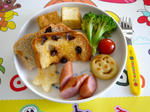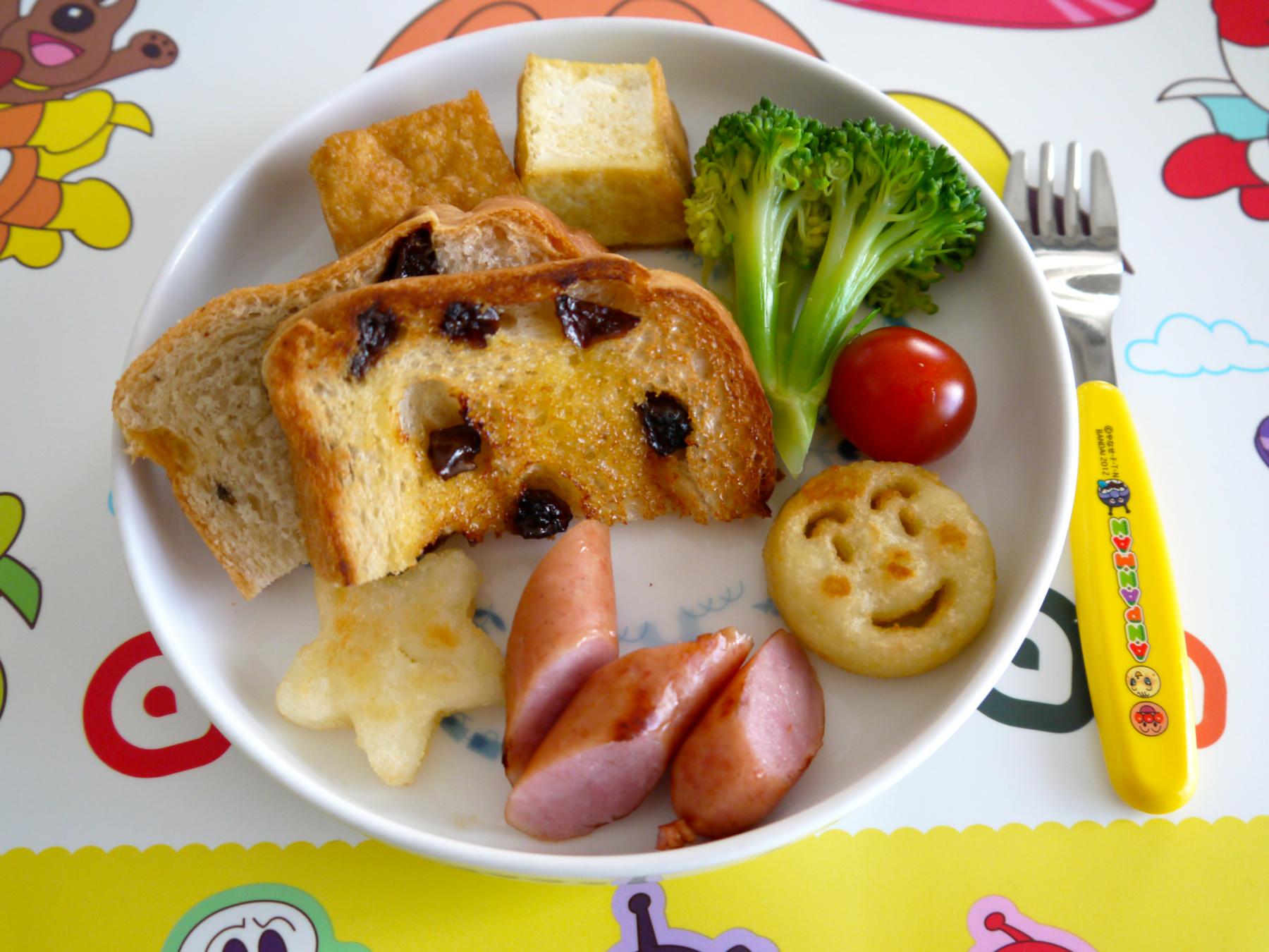 朝はだいたいパンを食べています。あと、定番なのはアンパンマンポテトとソーセージ。