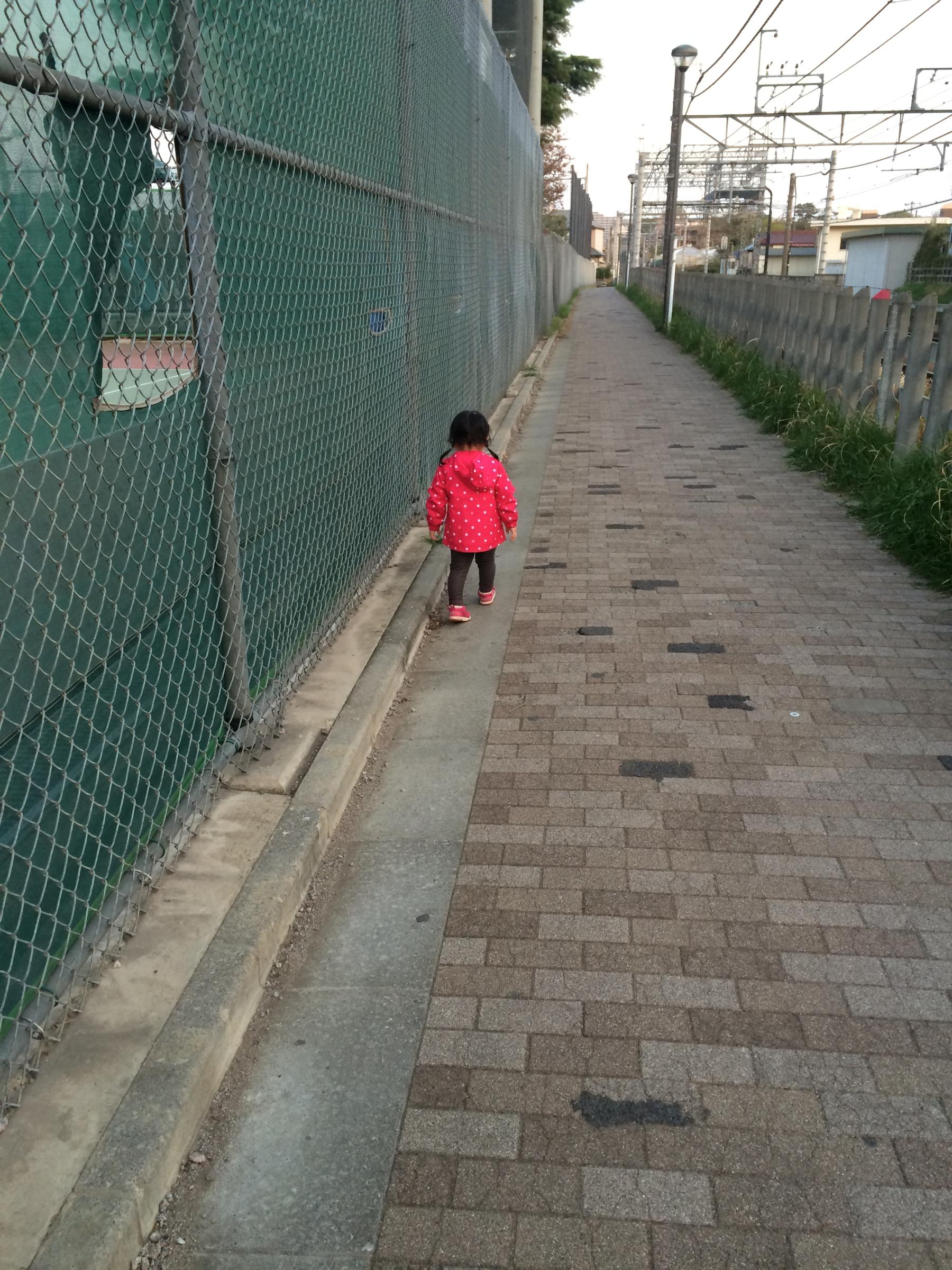 保育園の帰り、途中までお友達と手を繋いで歩いていたのだけど、ここでバイバイだよ、と言うと嫌だと行って泣いていたのに突然何を思ったか走り出したこのちゃん。お友達にバイバイもしないで一目散に線路沿いの電車がみえる公園に向かって行きました。