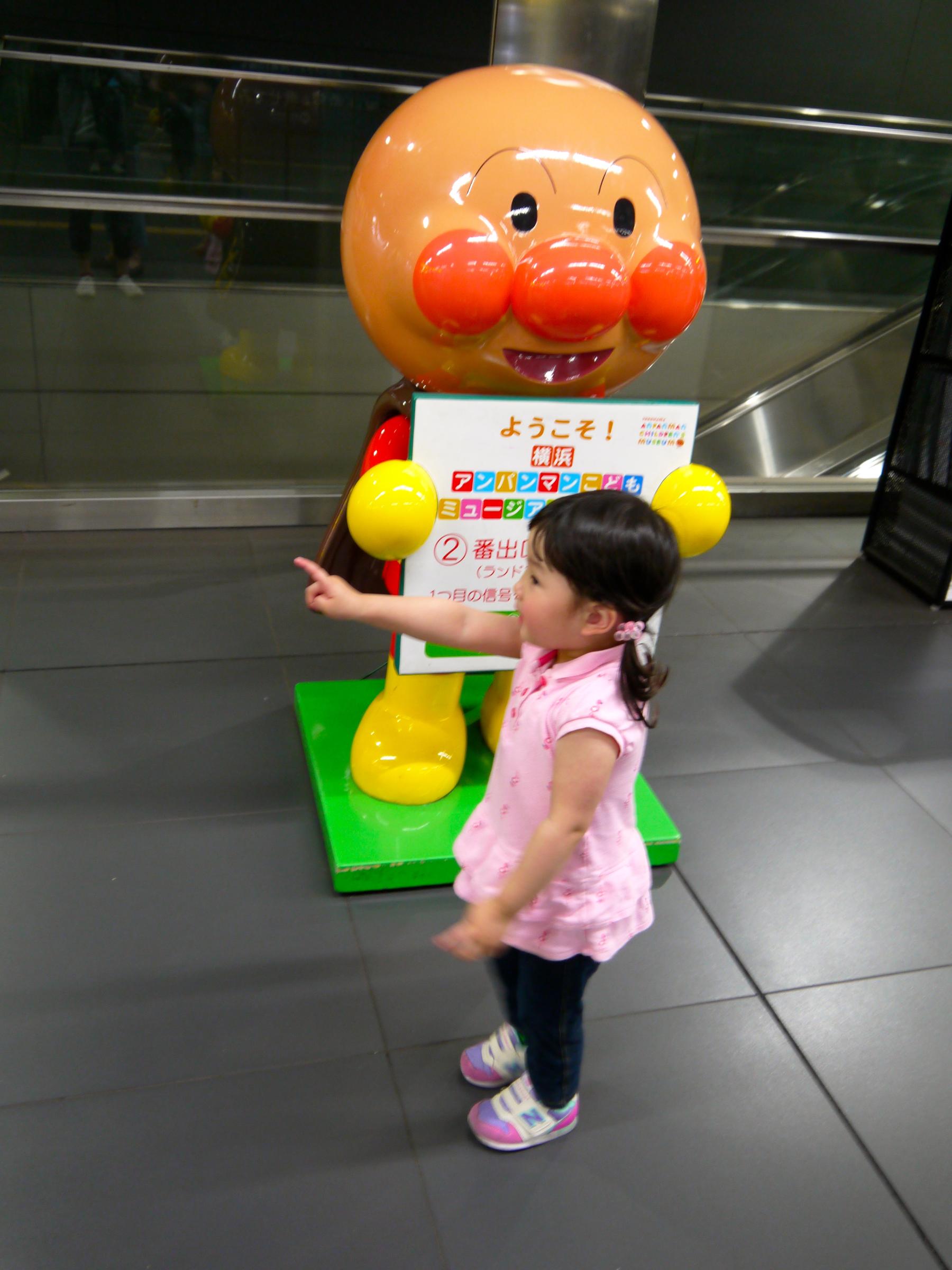横浜のアンパンマンミュージアムを目指してやってきました〜✨ここはまだ新高島の駅の中ですが「アンパンマンだ!」と大興奮です。