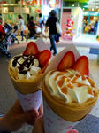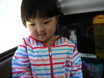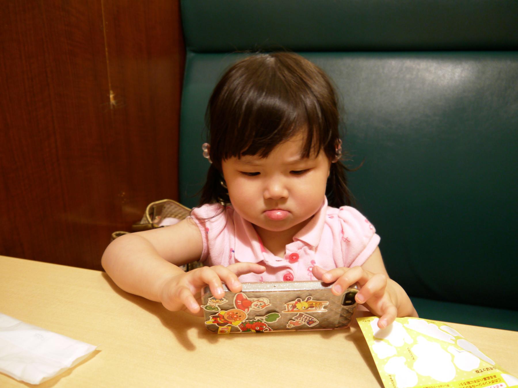 ミュージアムの前に腹ごしらえ。子供用にくれたアンパンマンシールはあっという間にママの携帯に貼られてしまいました。