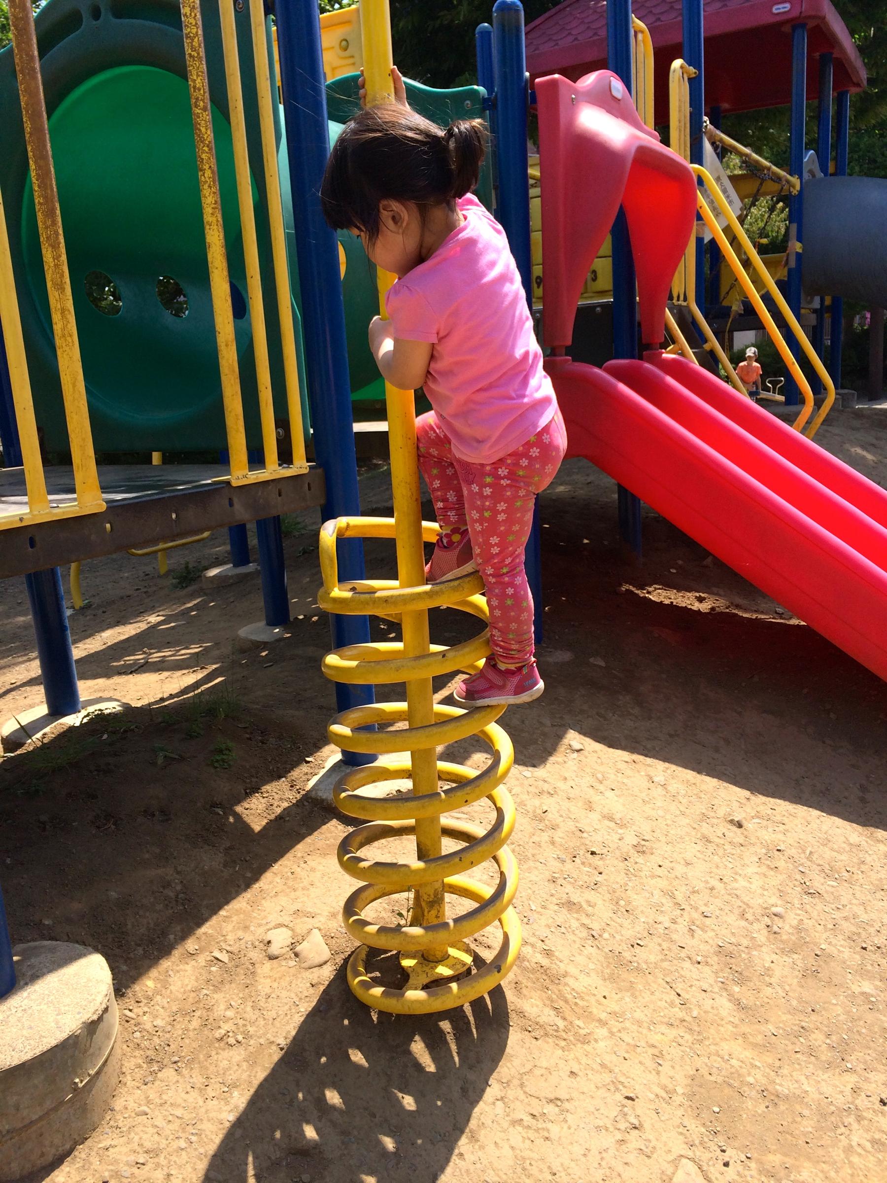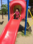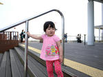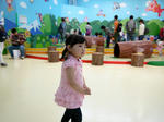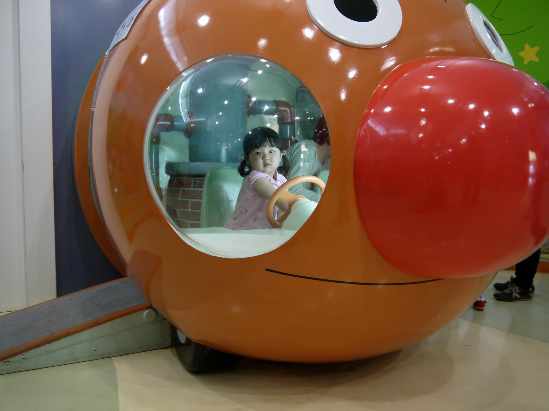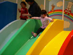 本当は3歳児からという滑り台。一人で階段をのぼれるならいいですよ〜とお姉さんが言ってくれたのでやってみることにしました。初めの数回は赤い傾斜がゆるいほうを滑っていたのになぜか緑に行くこのちゃん。ママが下で受け止めるから大丈夫か、と待っていたらやっぱり急で恐かったようで滑り台は終わりにしてくれました。エンドレス...と思っていたのでちょっと助かりました。