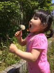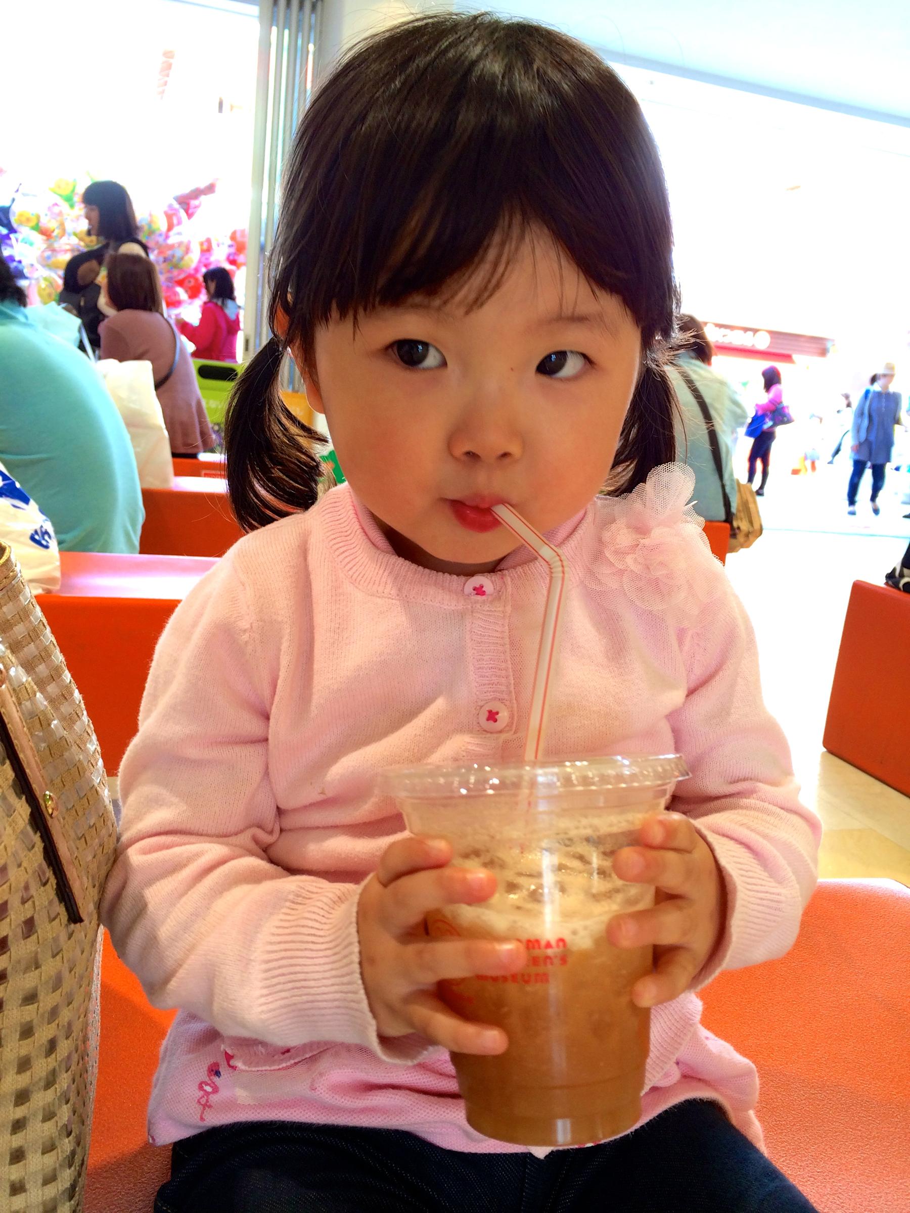 風船がほしいというこのちゃんをりんごジュースで何とかなだめ...おやつタイム。