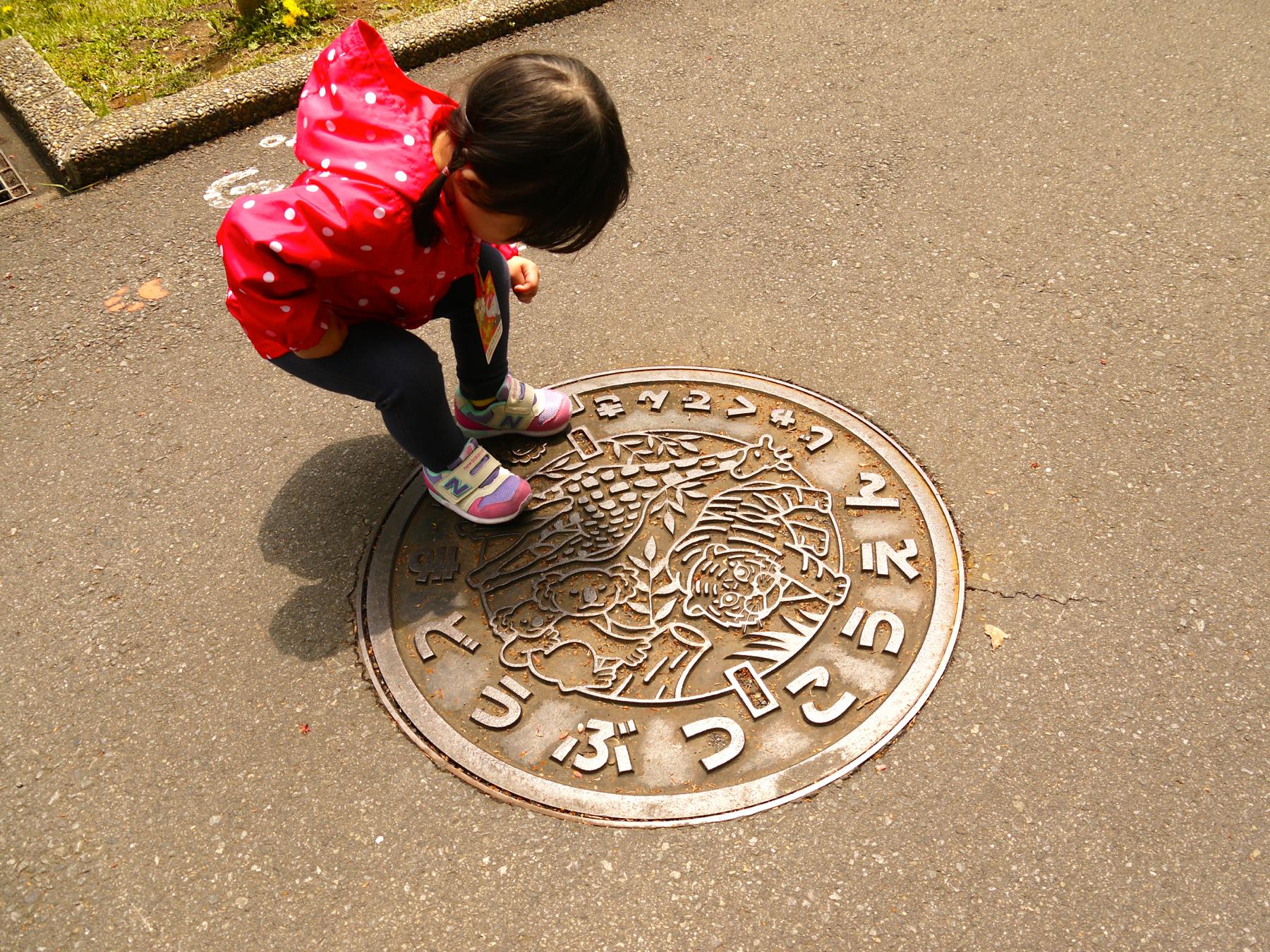 マンホールにも動物の絵が描いてあるのでこのちゃんは大喜び♡立ち止まってはじ〜っと眺めていました。