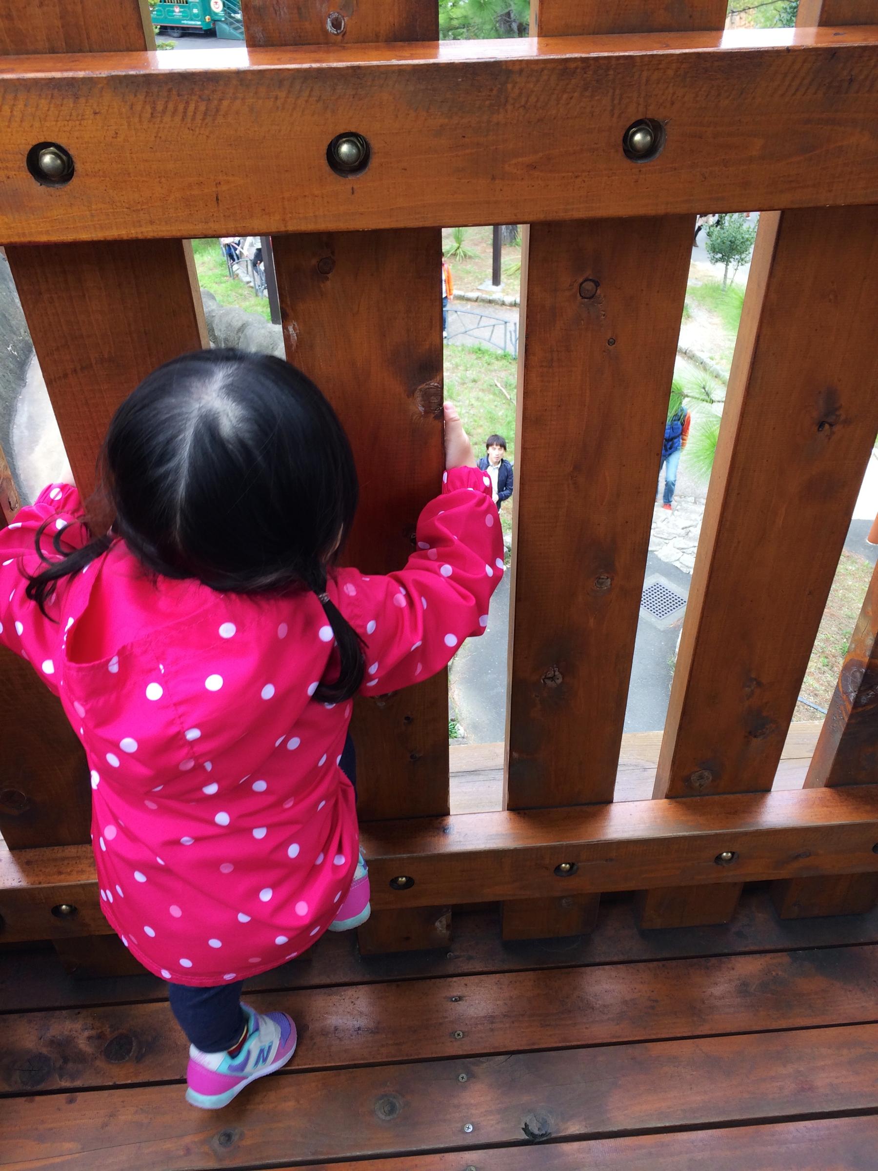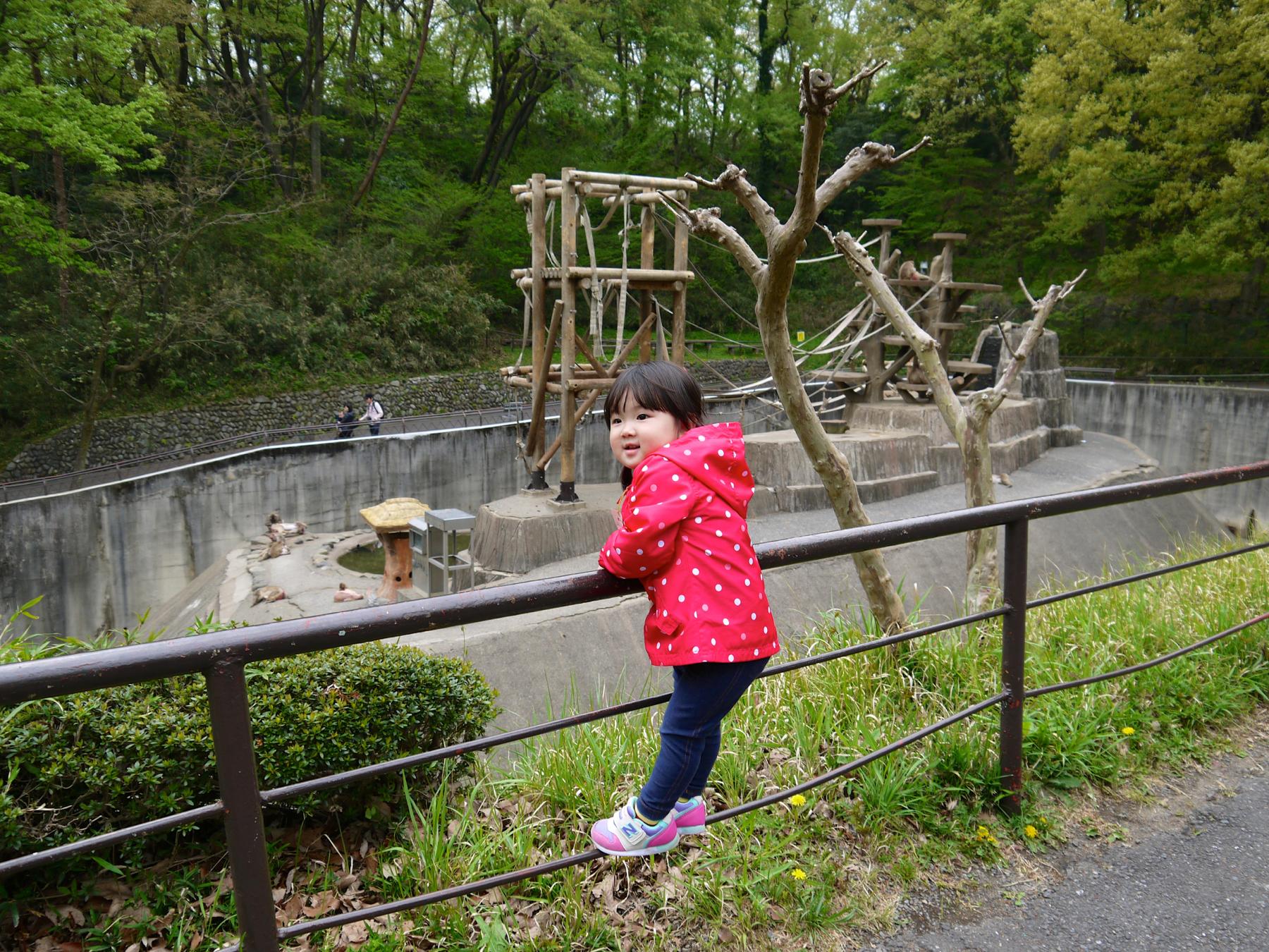 猿山では2匹のサルが激しく喧嘩しているところに遭遇...鳴き声がすごかったので恐がるかと思いきや、このちゃんは全然平気でした。