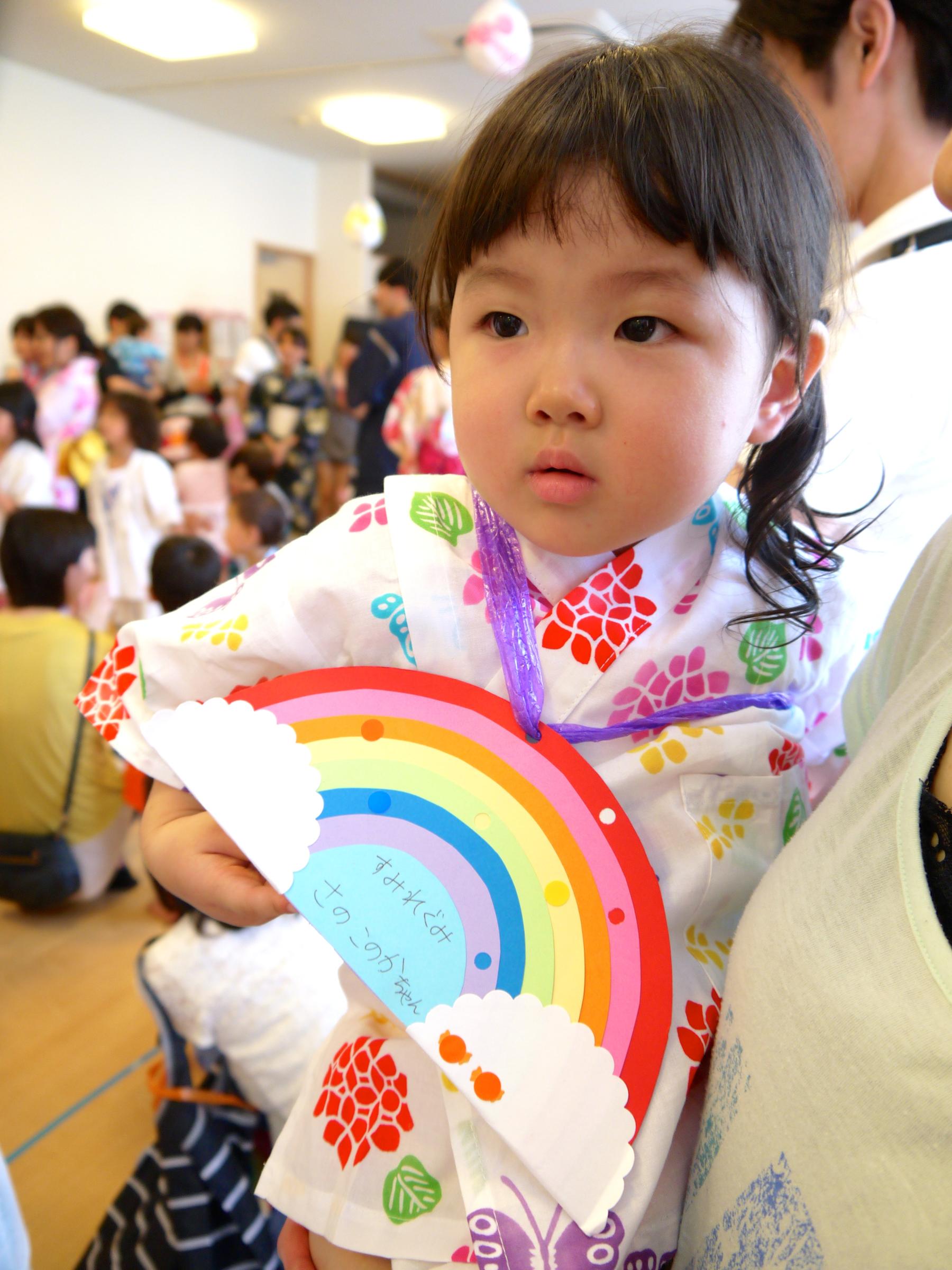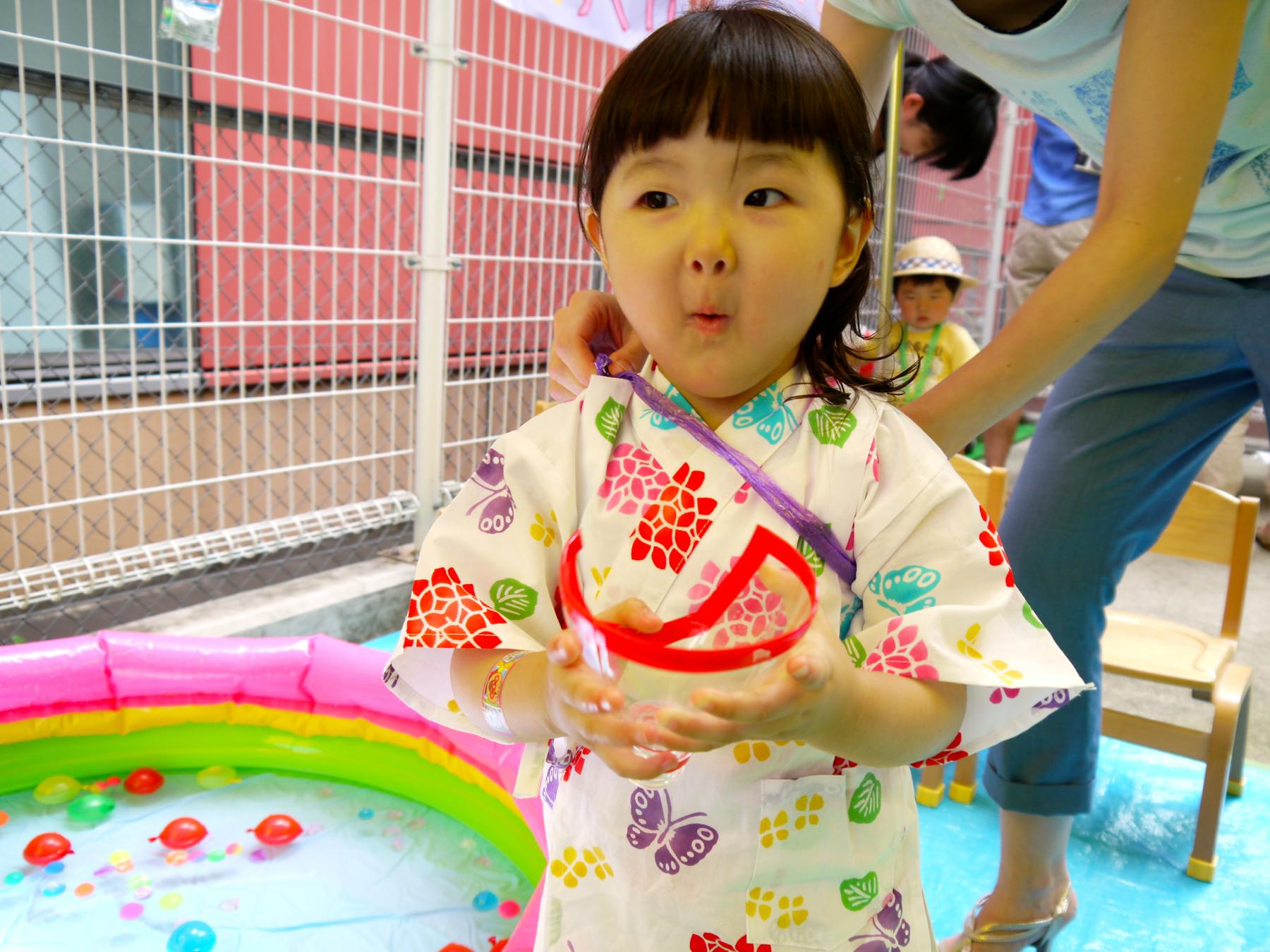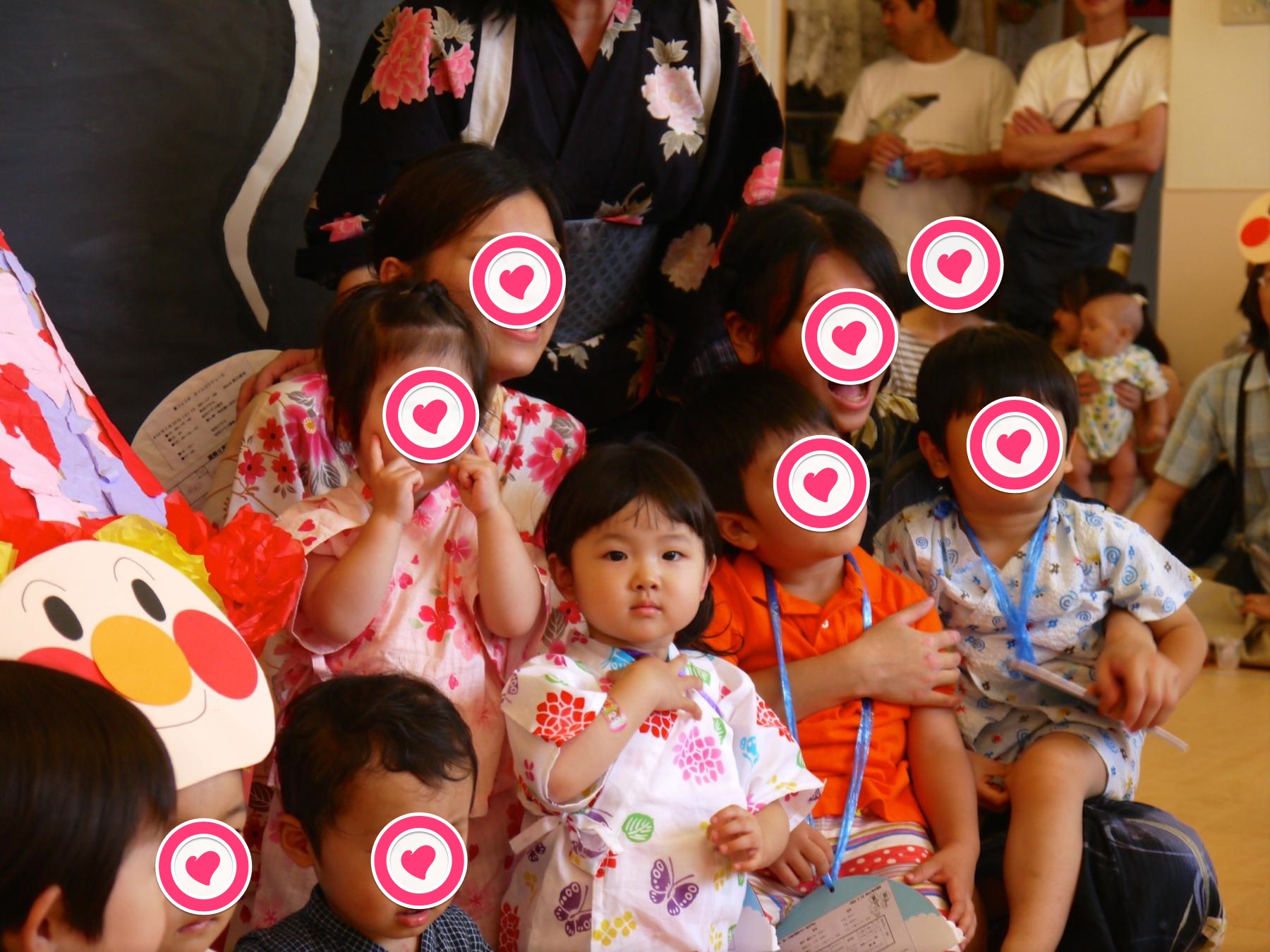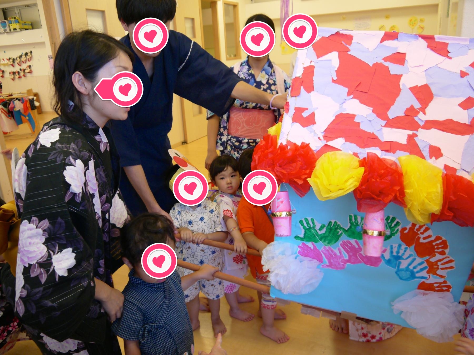 カメラを向けても真顔のこのちゃんを先生ががんばって笑わせてくれたので笑顔の写真が撮れました。お祭り、楽しかったね♪