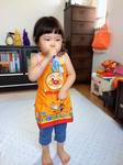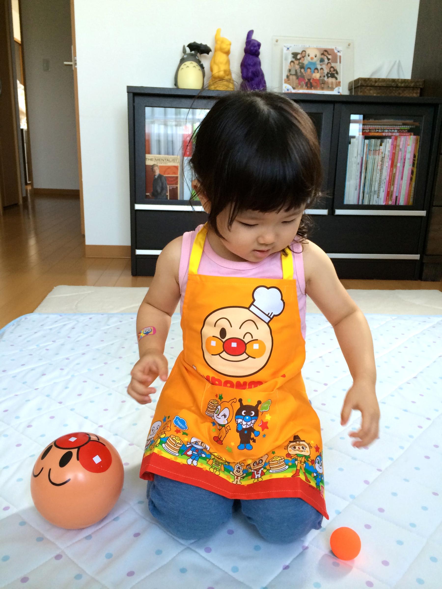 お友達のママからこのちゃんにアンパンマンのエプロンをもらいました。