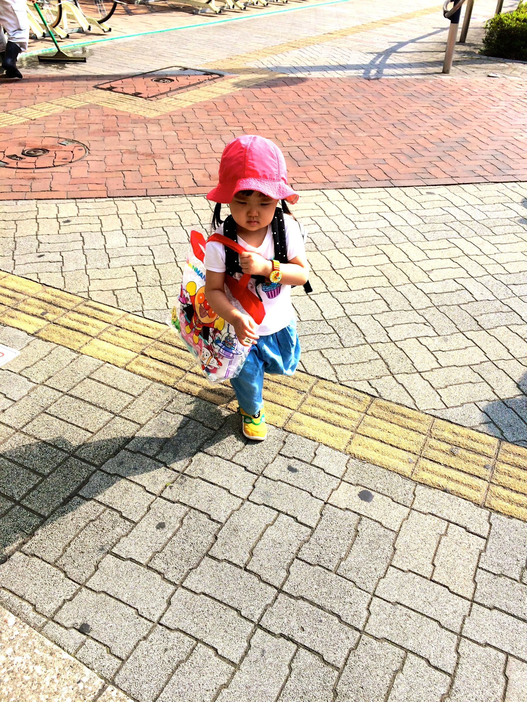 アンパンマンのプールバッグは自分が持つと言って聞きません。引きずると穴が開いちゃうよ、と言ってあるので一丁前に肩にかけていつものリュックも背負って毎朝登園しています。