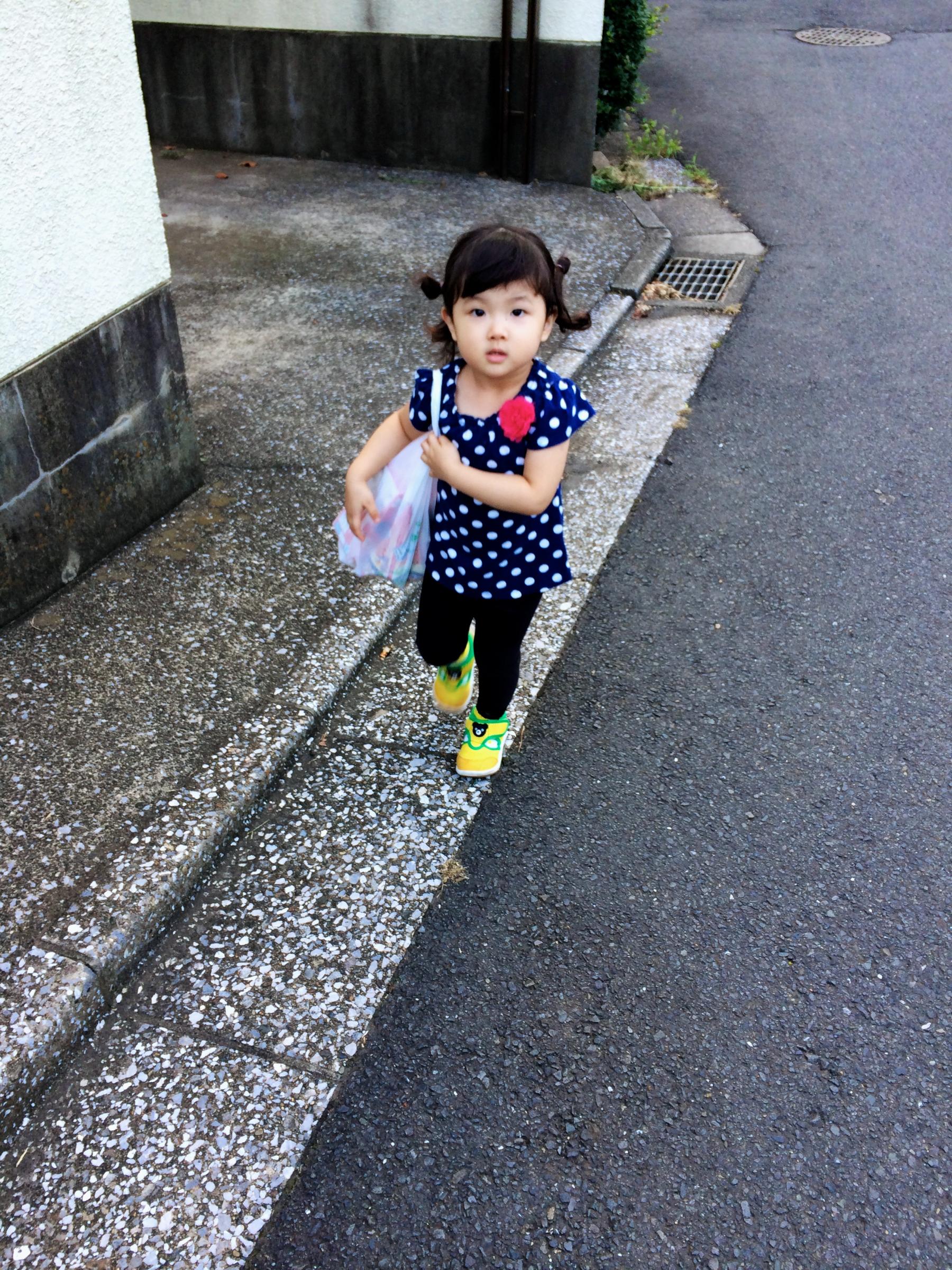 熱は下がって元気になったので今日は保育園に行きました。帰りにパパにアイスを買うと「このちゃんがもつ〜」とコンビニの袋を肩にかけて持ってくれました♪