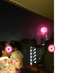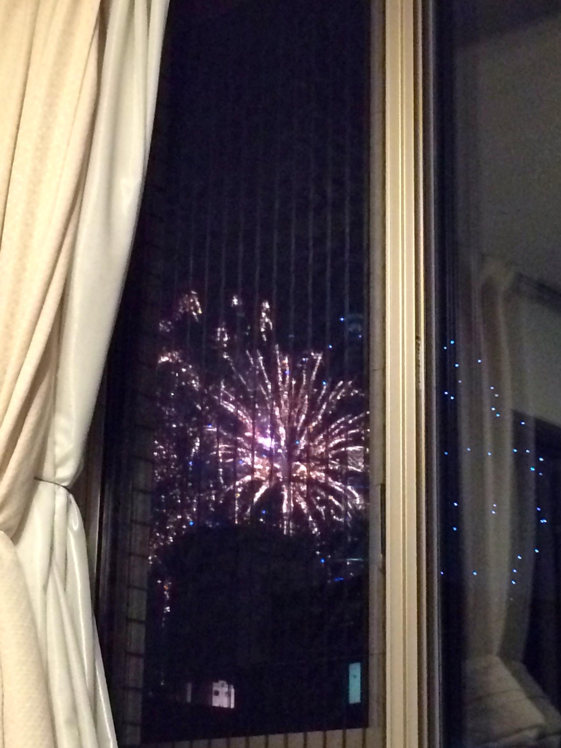 子供たちも入れると総勢15名ぐらいでごはんを食べながらワイワイと花火をみました。外からは涼しい風も入ってきて、花火はとてもきれいで楽しい時間を過ごしました。このちゃんも普段はあまり機会がない男の人に抱っこしてもらって真剣にみていました。