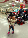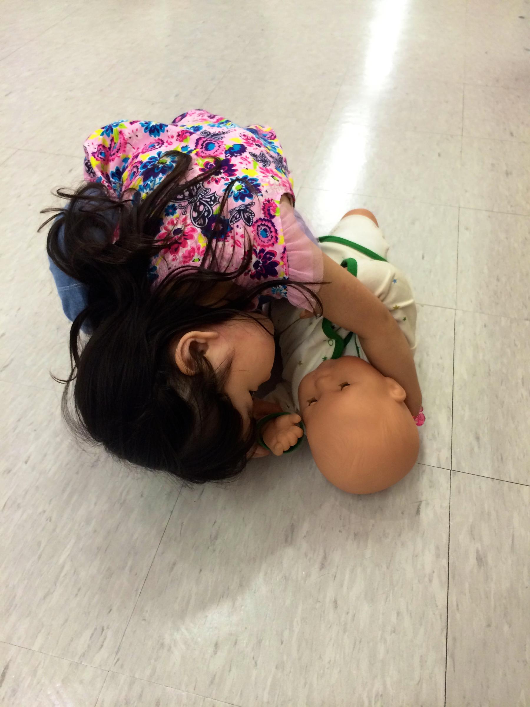 さっきとはまた違う赤ちゃんを...ベビーカーのコーナーにいた赤ちゃんのお人形を抱っこして離しません。