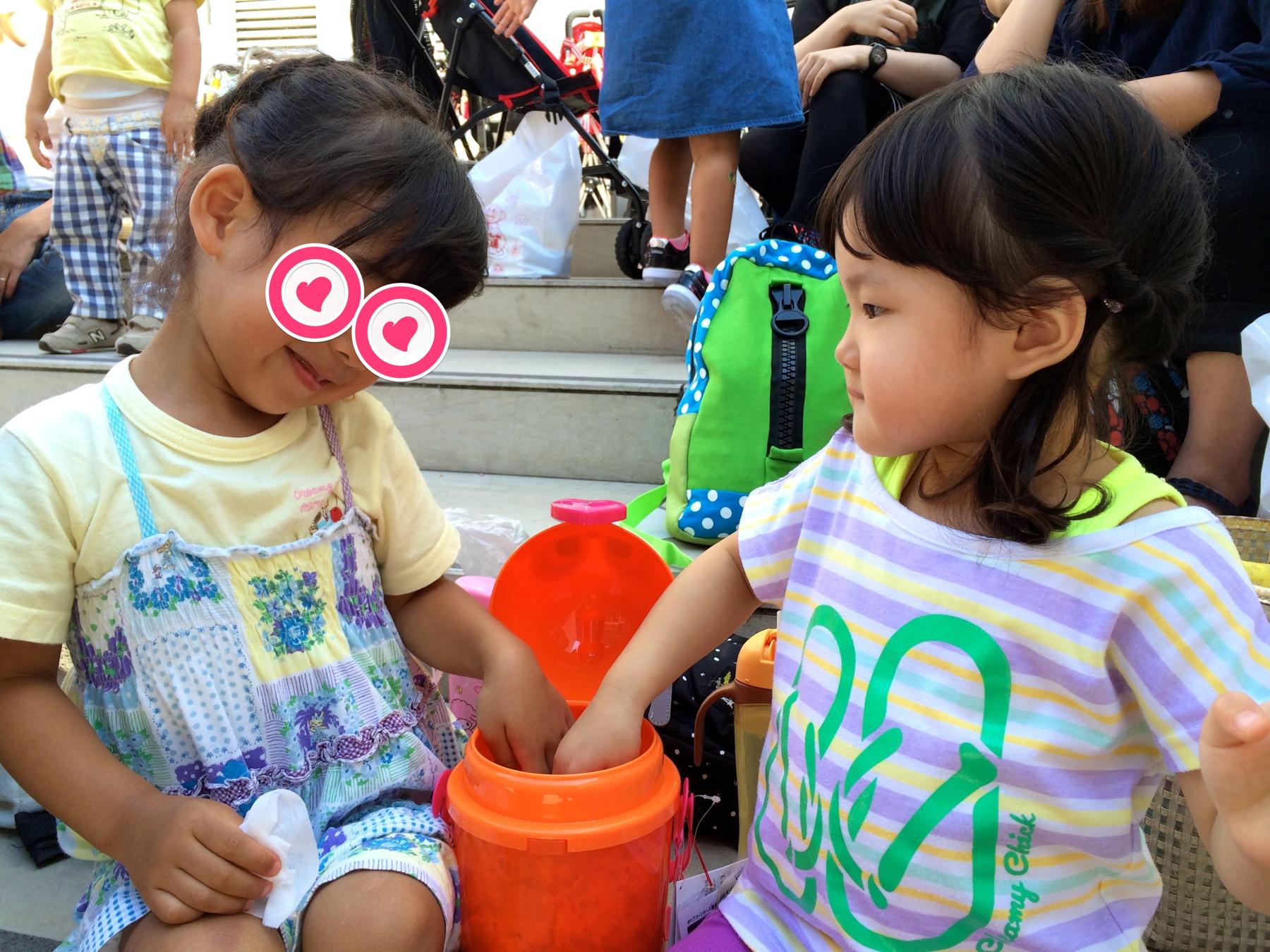 お友達が買ったポップコーンを分けてくれて、パクパク食べていたこのちゃん。