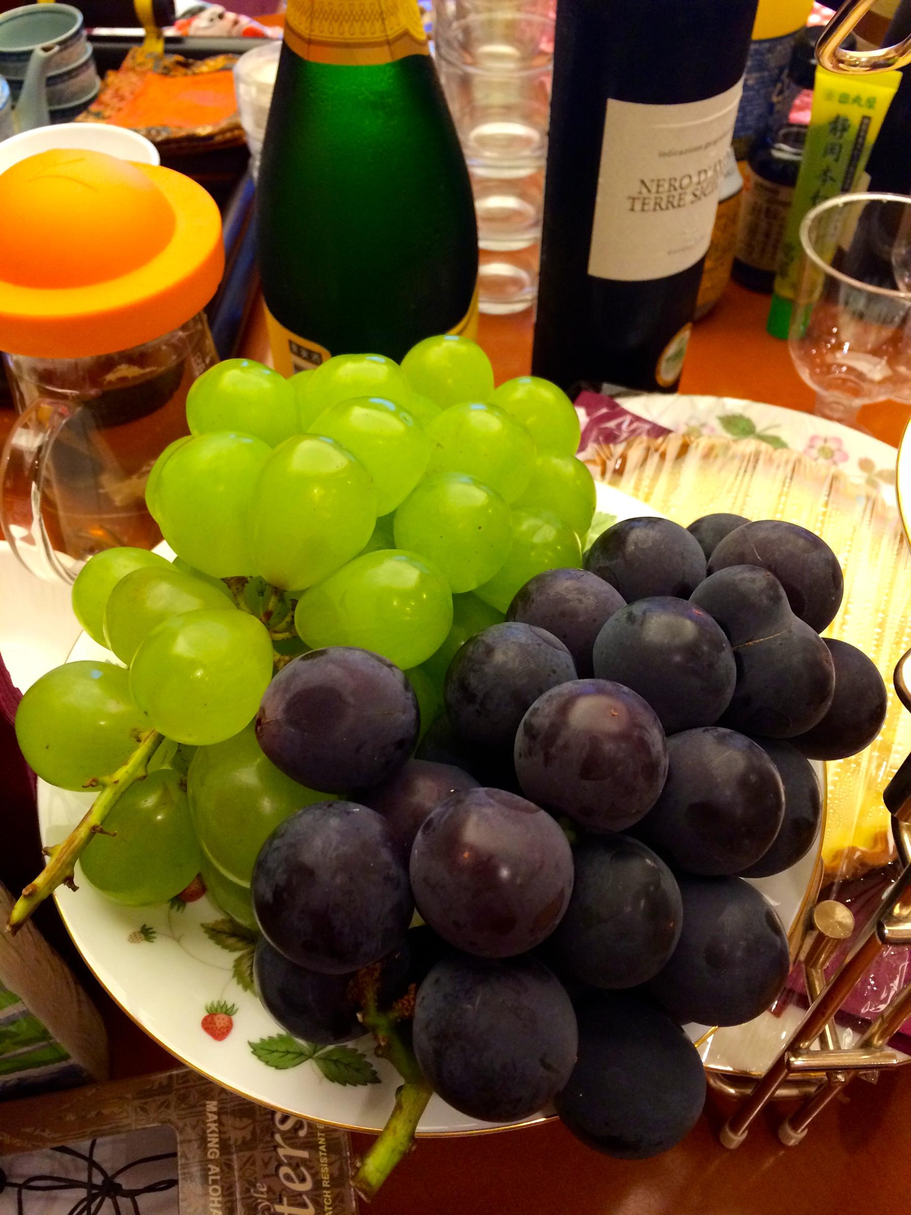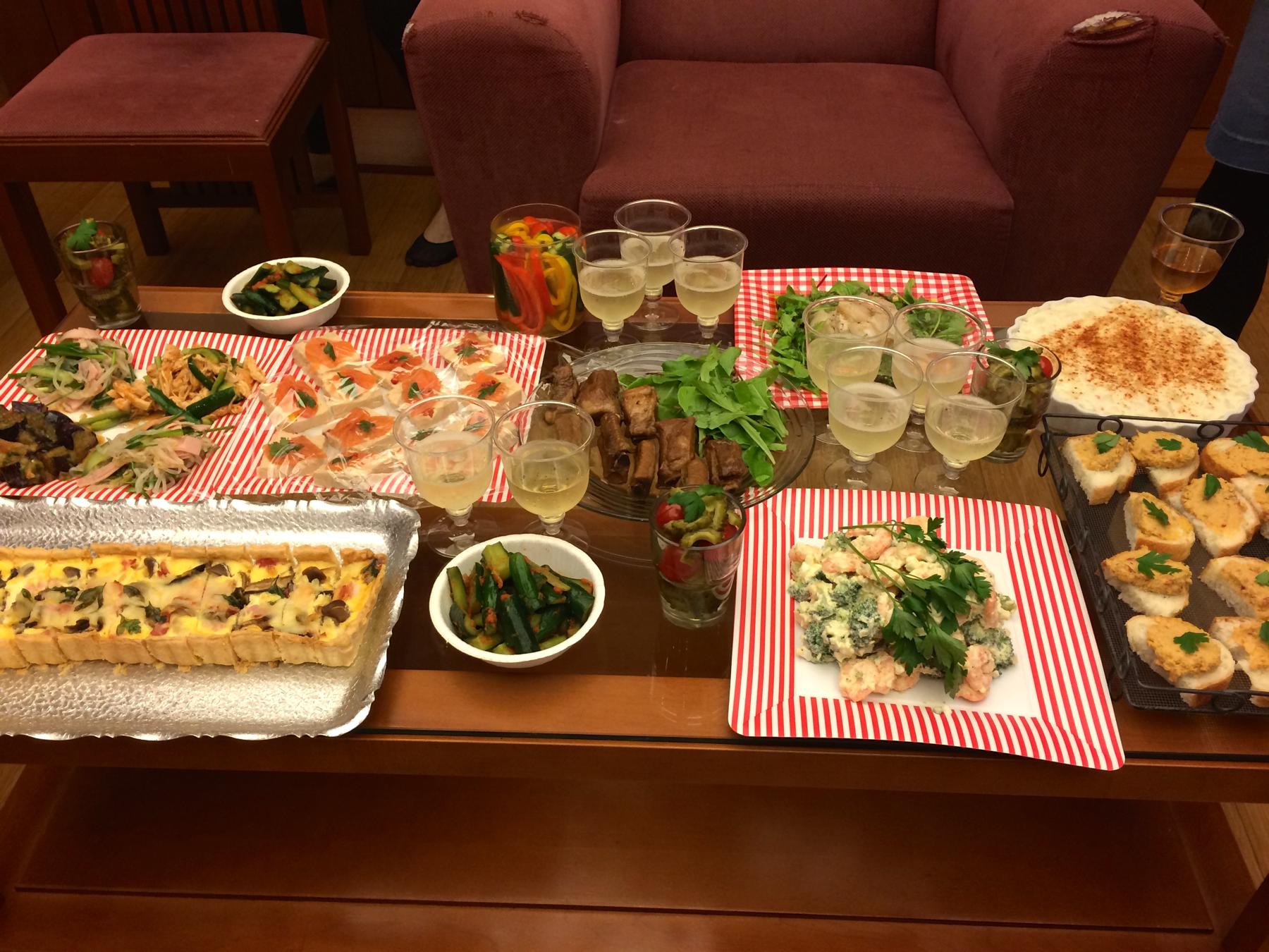 素敵なご馳走の数々。持ち寄りパーティだったので、サラダ3種とぶどうをお土産にしました。
