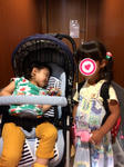 お散歩に行ってきま〜す。まだまだベビーカーが活躍中!