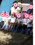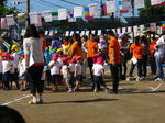 入場行進をして、これからみんなで準備体操をするところ。こっち見てる〜