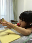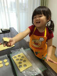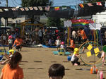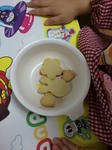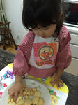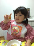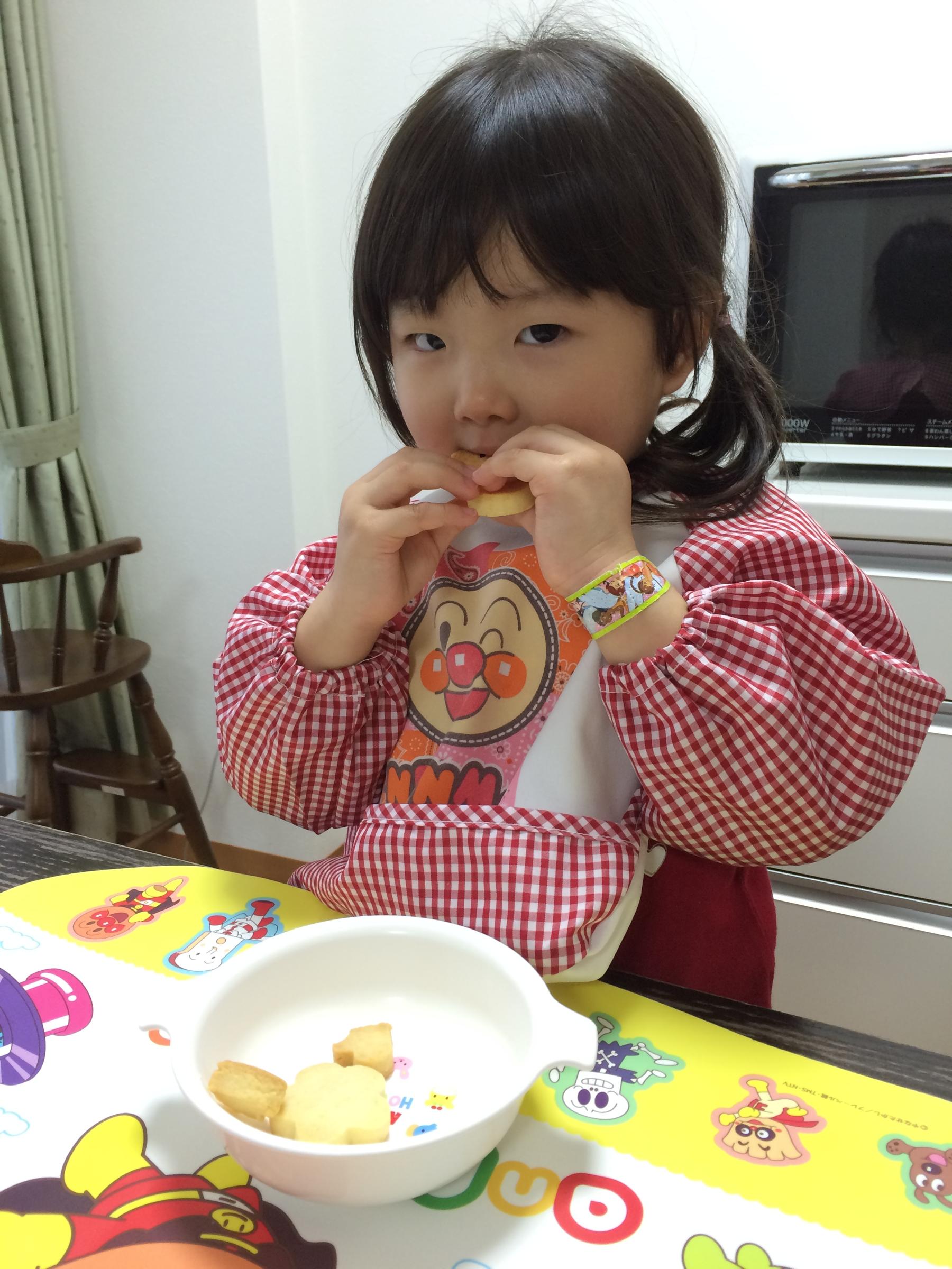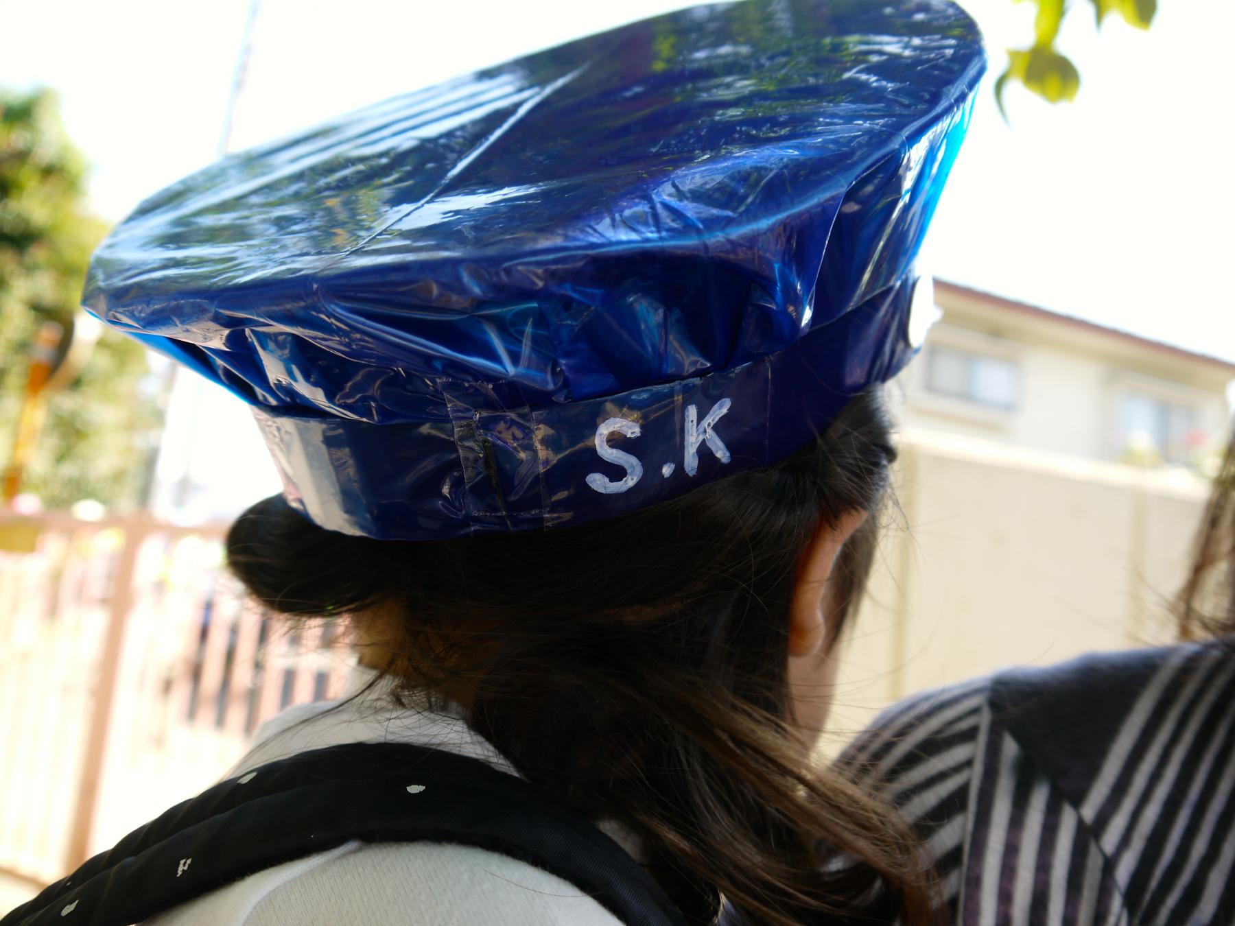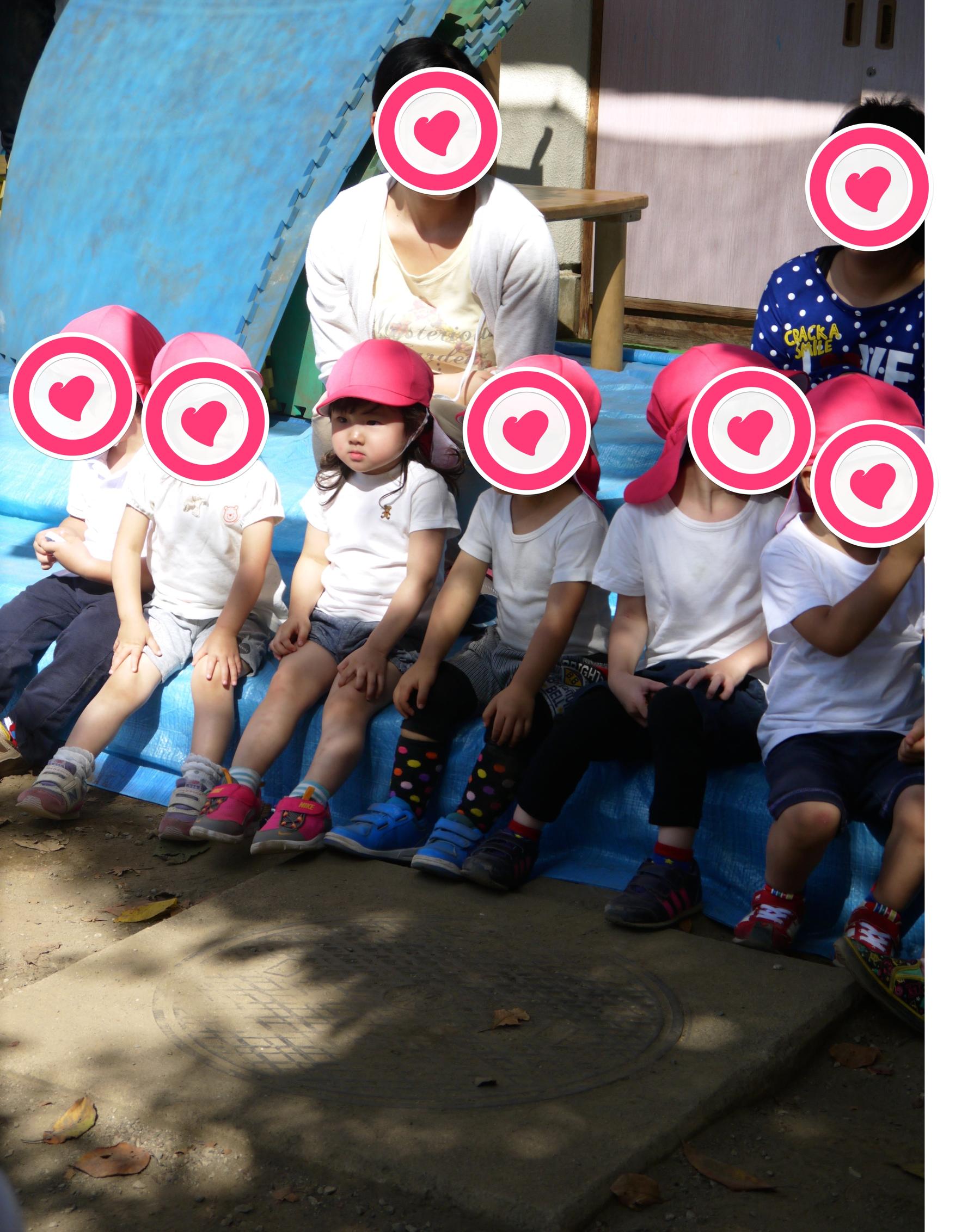 今年はまずマットででんぐり返しをし、電車に乗ってフラフープをくぐり、ジグザグに走ったら最後は半分に切られた自分のマーク(このちゃんはみかん)を探して先生に渡してゴールすると車掌さんの帽子がもらえて、最後に「ハイポーズ、ピッ」と保護者席に向かってポーズをするという何ともかわいらしい競技でした。