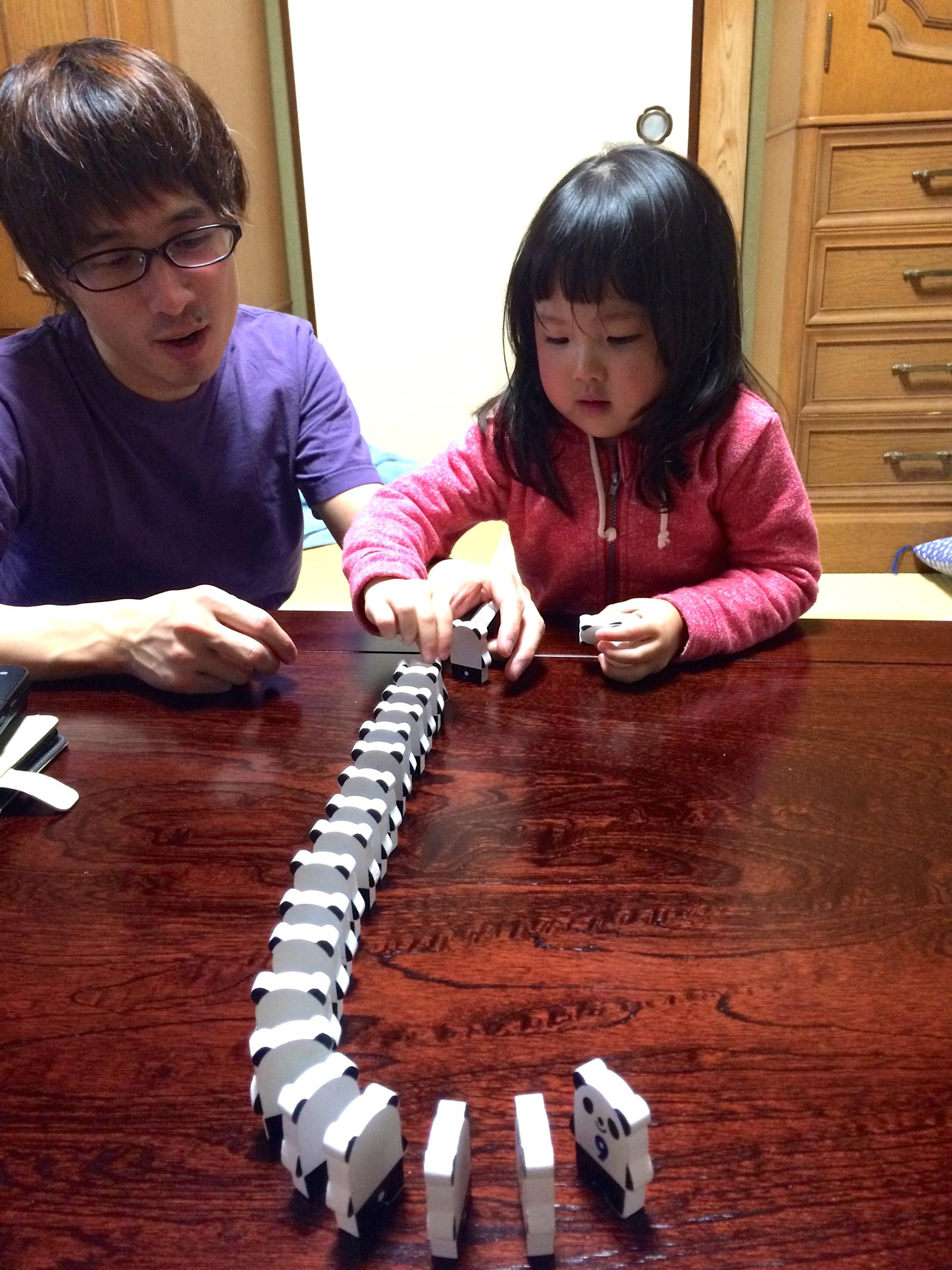 大晦日からお正月は祖母宅で過ごします。パパと、パンダのドミノをするこのちゃん。