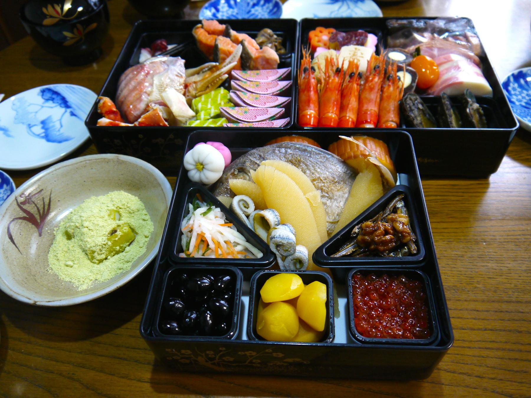 朝兼お昼は、お節とお雑煮、きなこ餅を食べました。パパは...大晦日からシャンパン〜ビール〜シャンパンと飲み過ぎたためまさかのダウン。。。起きているときはお茶を飲み、夜、なんとかおそばを食べることができました。明日には復活してるかな。