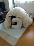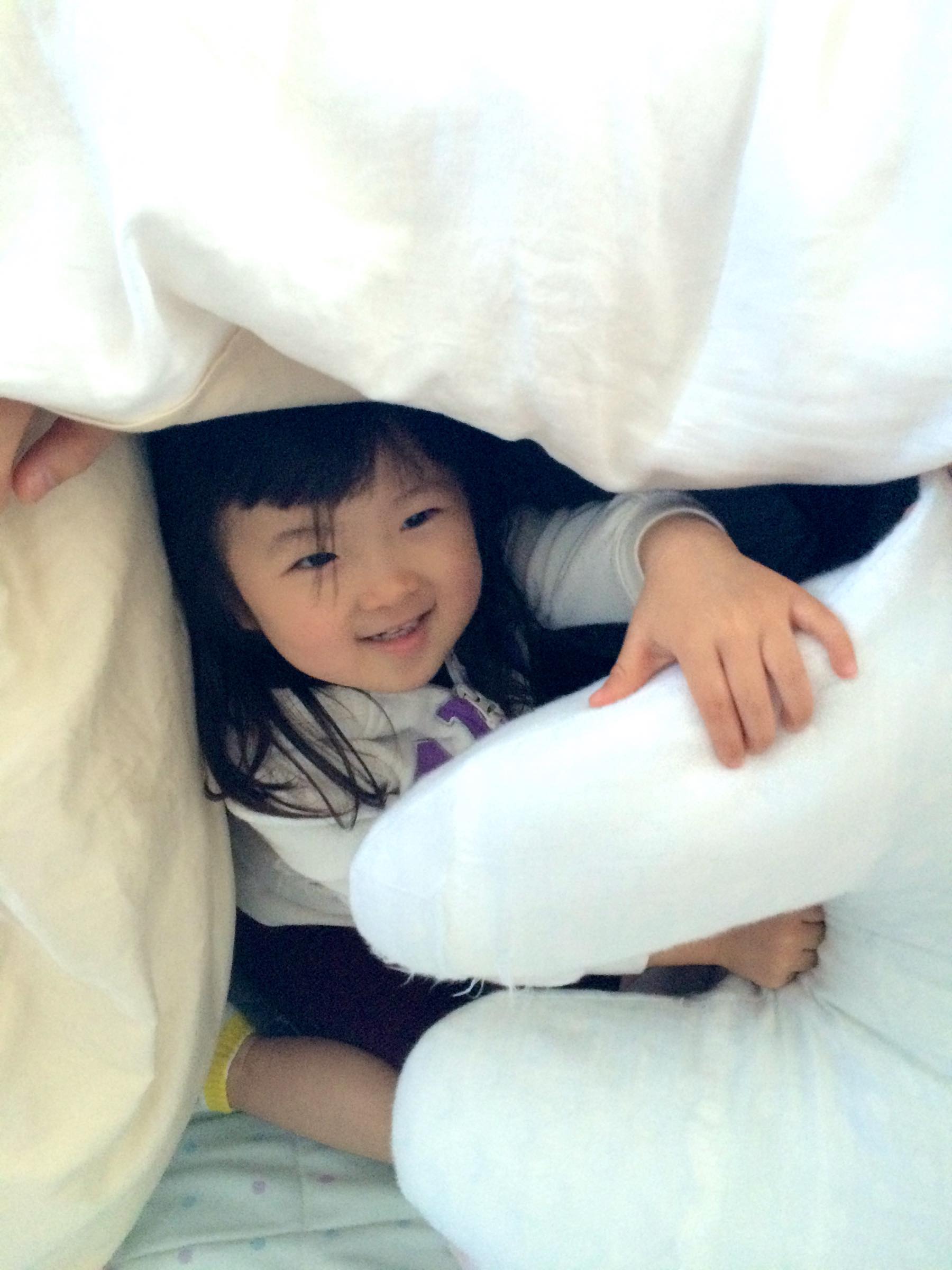 確かにお布団が 'かまくら' にみえる...(笑) 自分のまくらを扉に見立てて「がちゃっ」と開けたり閉めたり楽しそう♪ パパがやめたくてもこのちゃんは楽しいようでいつまでも遊んでいました!