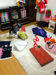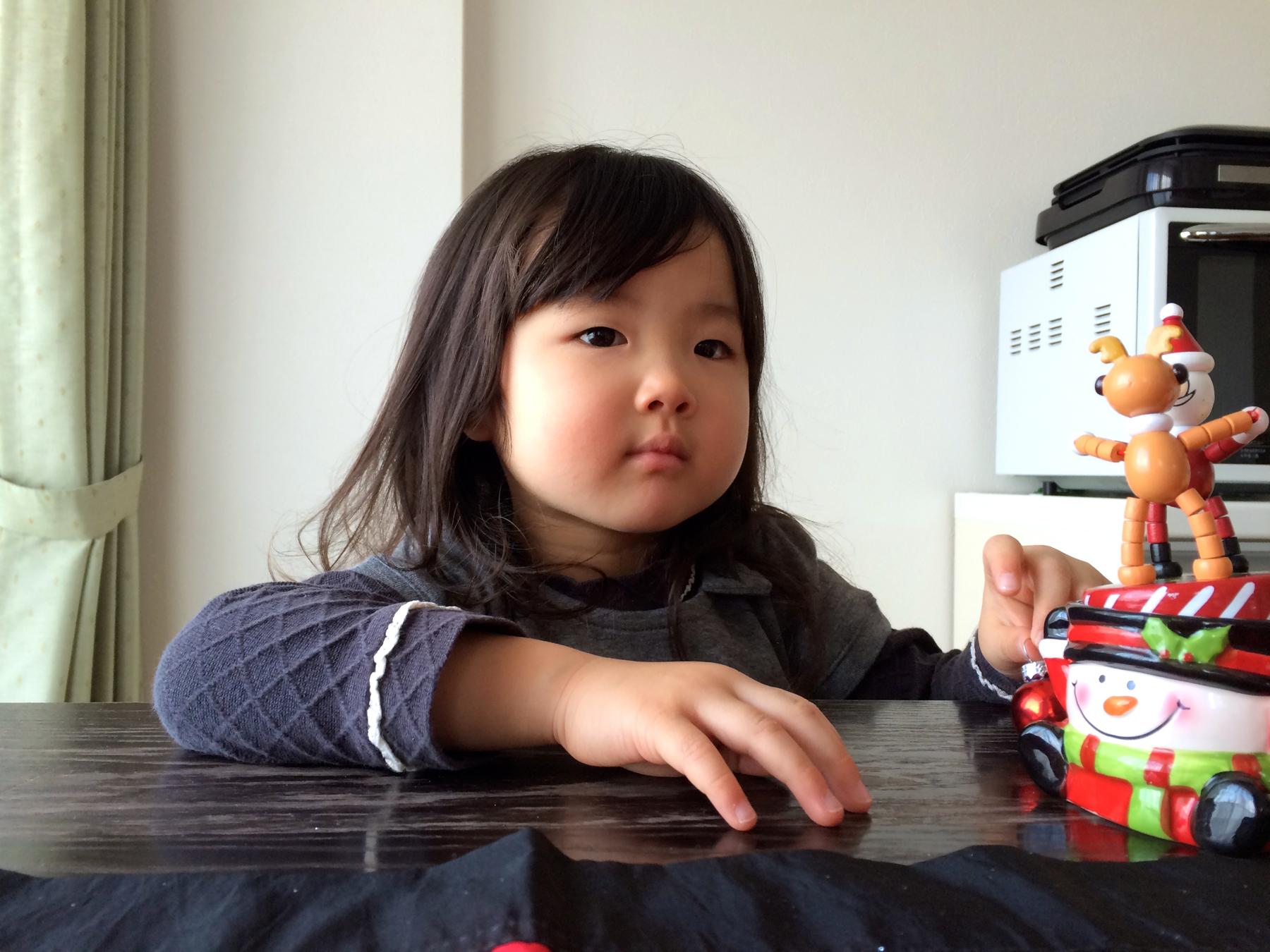 このちゃんの誕生日はクリスマスと近いので、去年と同じく今年もいっしょにお祝をすることにしました。ママは料理の準備でバタバタ...このちゃんはひとりで遊んでいます。