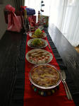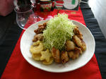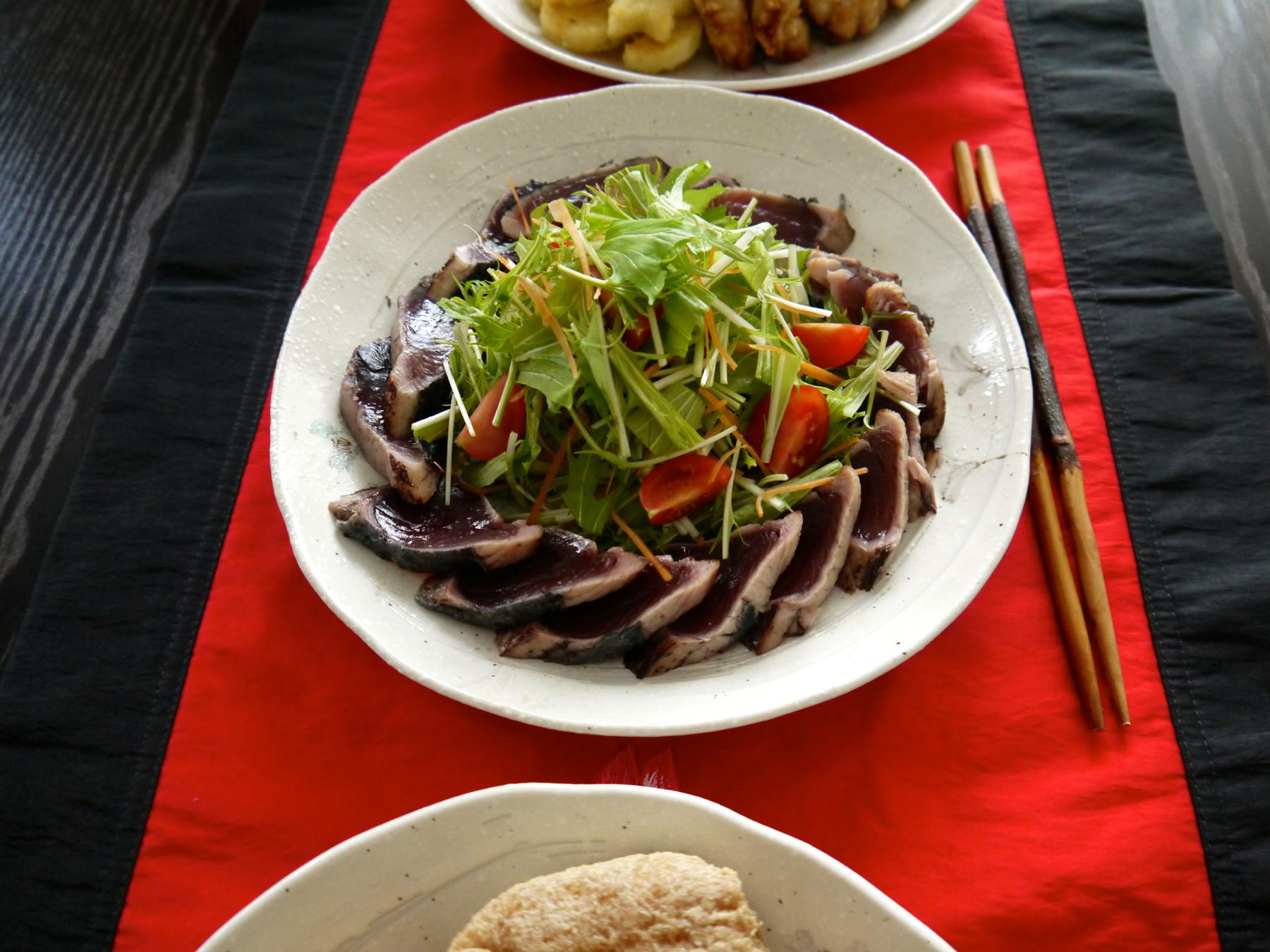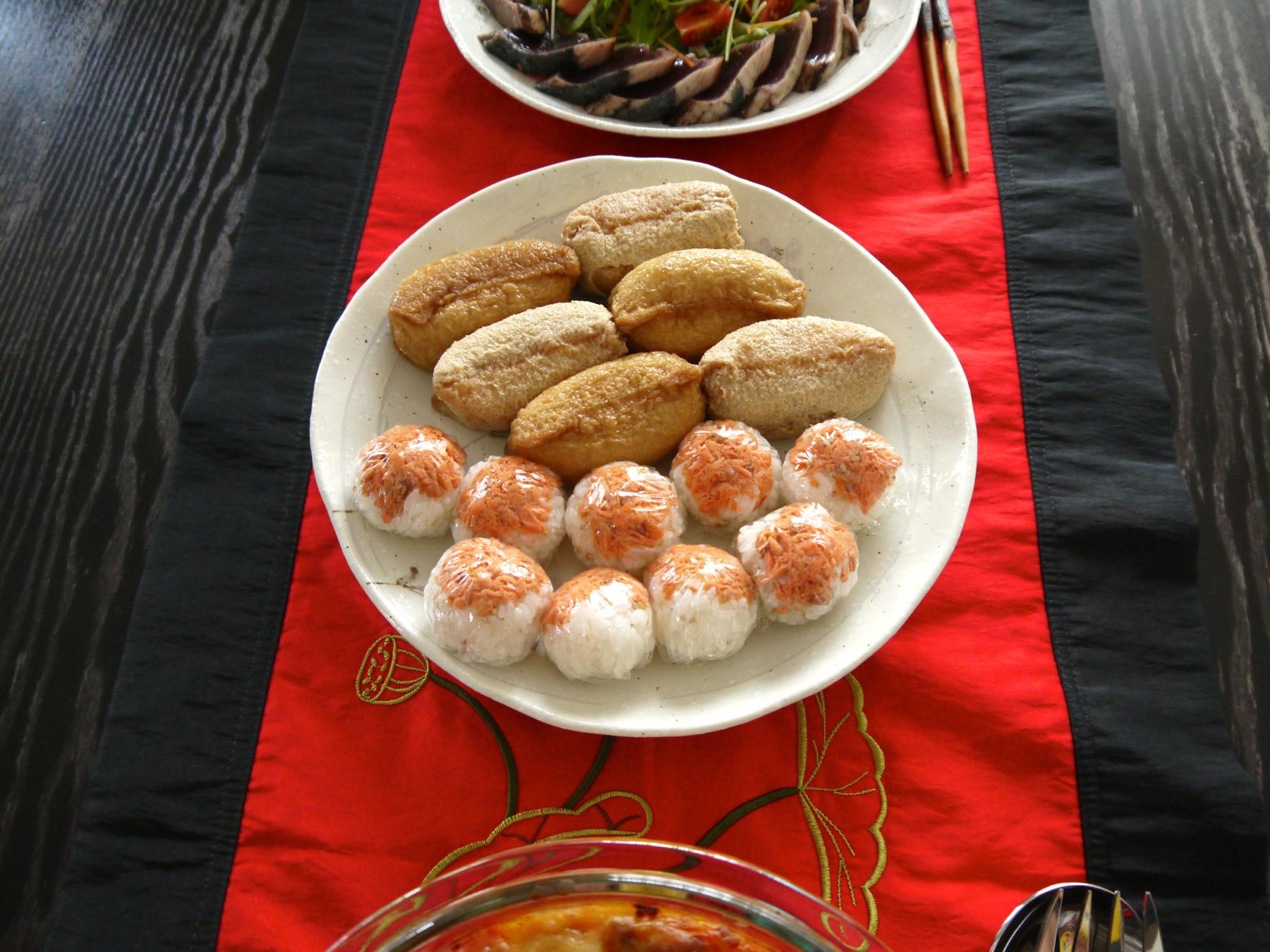 メニューはラザニア、しゃけおにぎり、お稲荷さん、かつおのたたき、唐揚げ、星ポテト☆