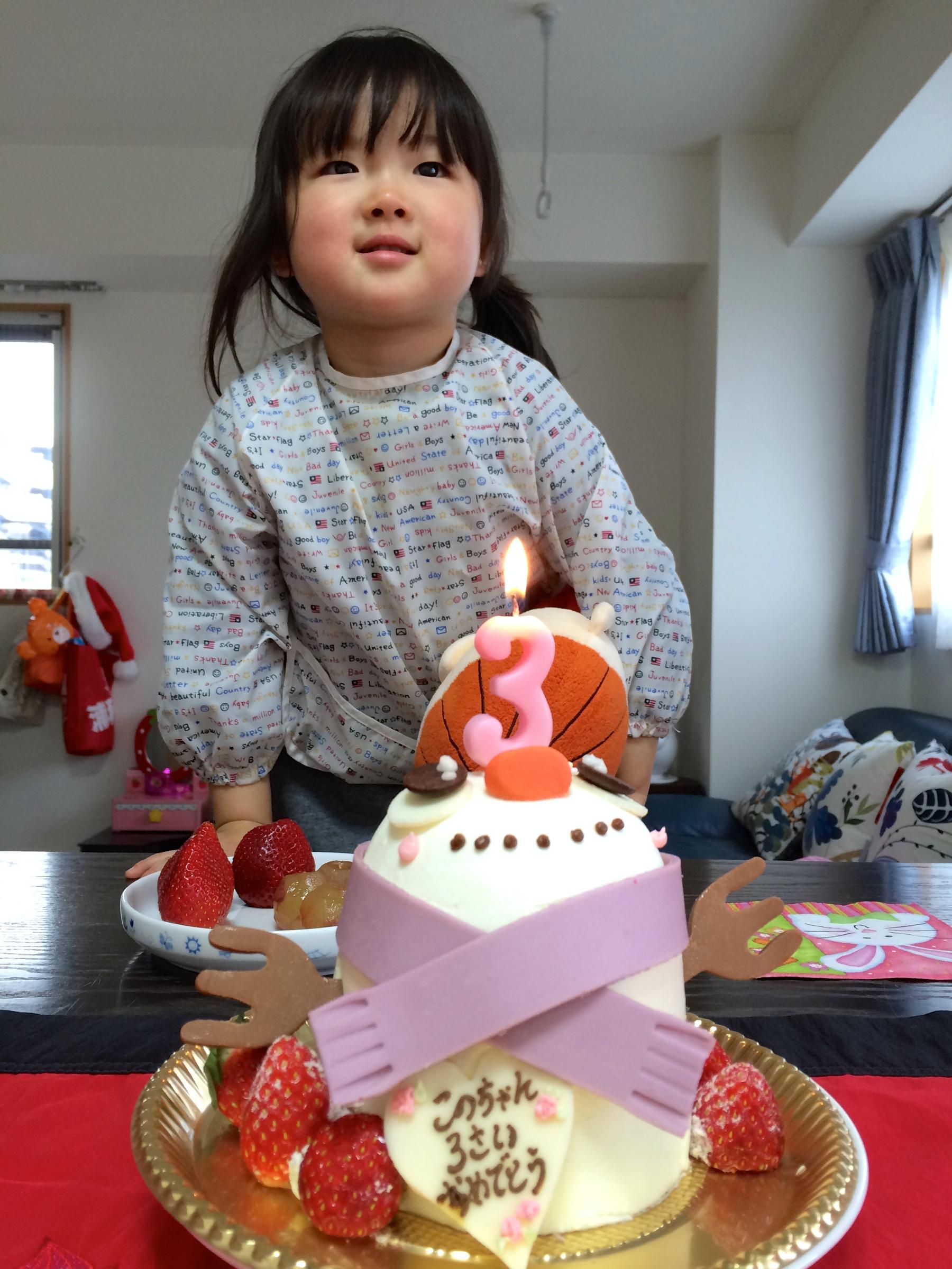今年のケーキは雪だるま⛄️BDソングを歌ってロウソクをふ〜っとし大喜びでした。今週は17日当日、19日の保育園と今日で3回もロウソクを吹き消しました(笑)