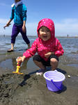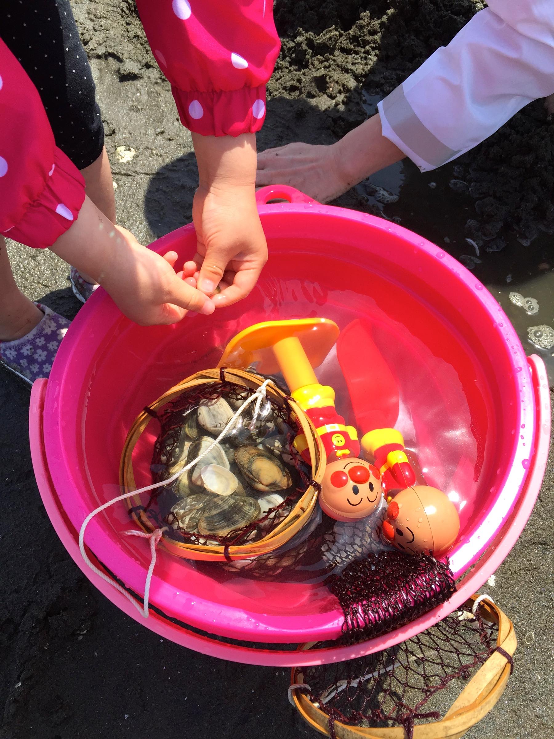 ママたちが採ったあさりを自分のネットにせっせと入れ替えて手柄にしようとしています(笑)