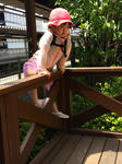このちゃん、スカートなのにテラスによじ登ろうとしています