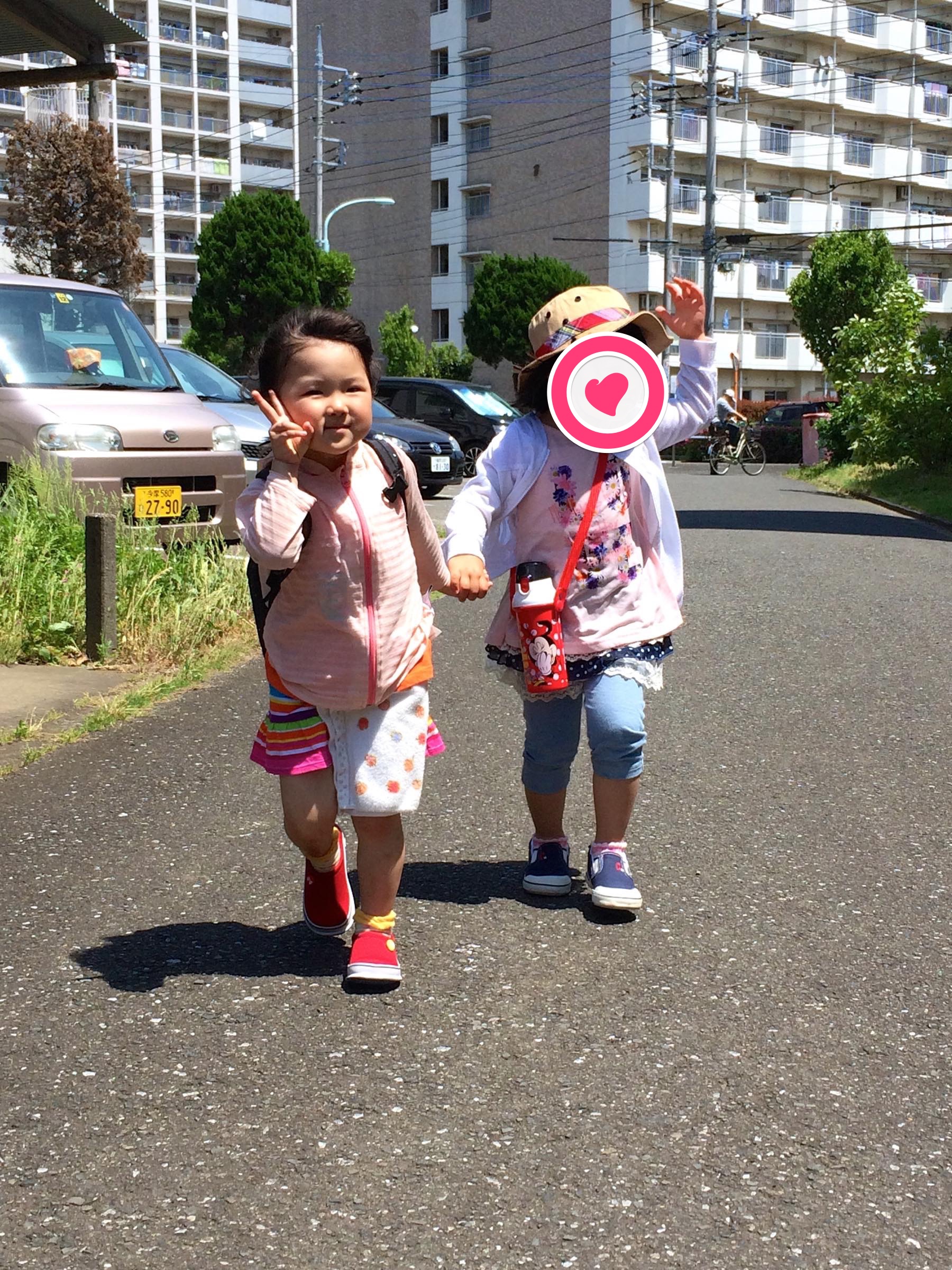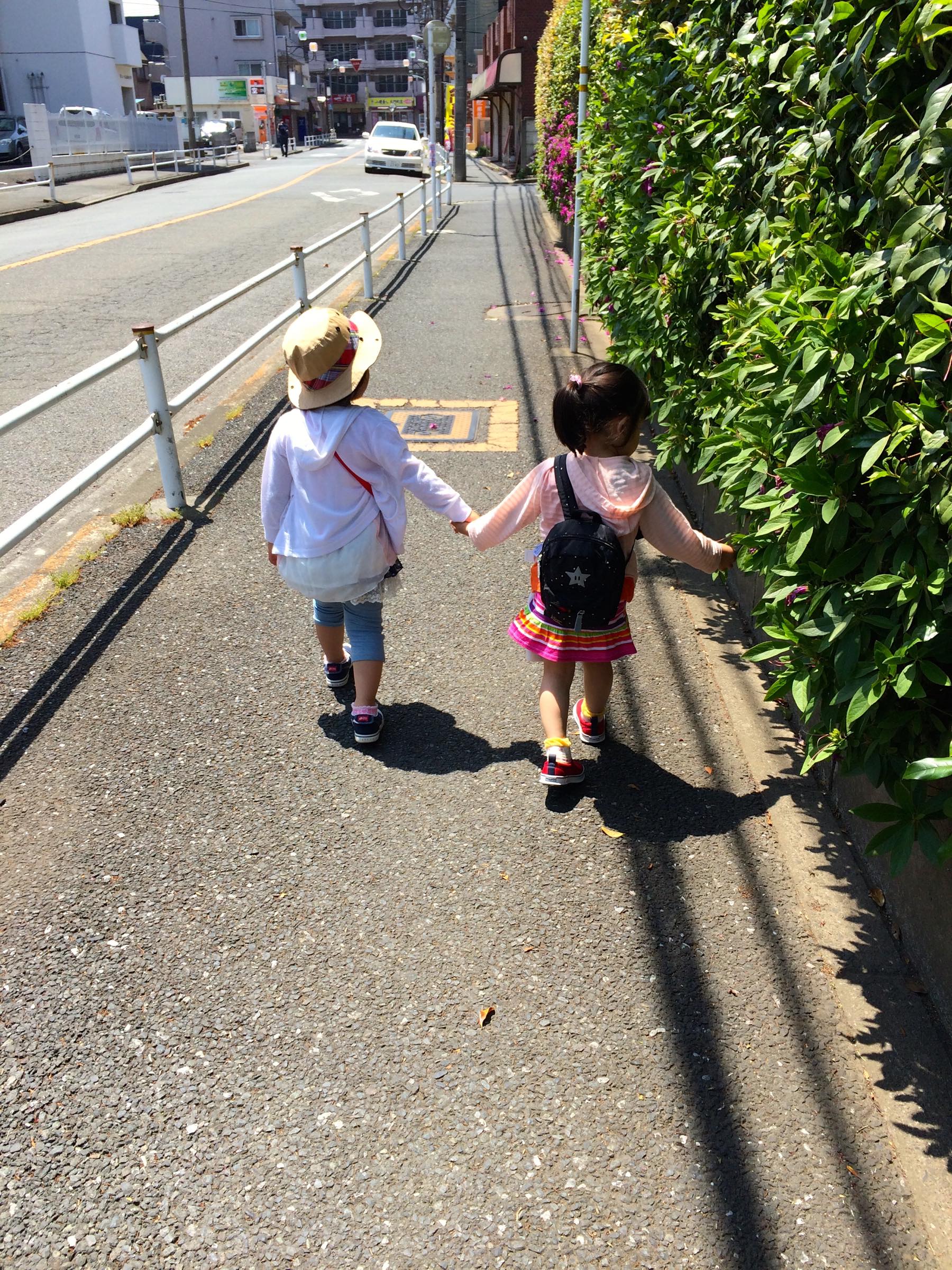 児童館にはらべこあおむしの人形劇をみに行ってきました。はらぺこあおむしは保育園でもよく歌うので歌詞を覚えていて大好きです。お友達が誘ってくれて一緒にみに行ってきました。その帰り道、パン屋さんにお昼を買いに行くところです。このあと、お友達の家にお邪魔してみんなでお昼を食べて遊びました。