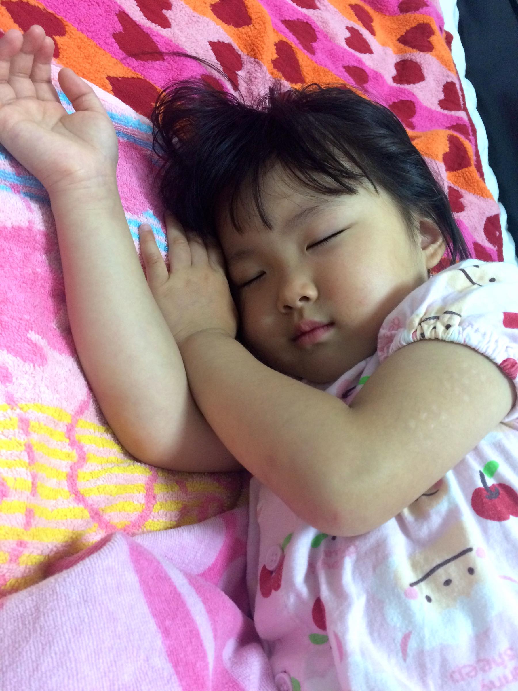 準備が終わると、自分の上にもタオルをきれいに広げてかけて寝に入ります。タオルがうまく広げられないときはキーッとなって「ままやって〜」と泣きついてきます。見ていると面白いです。