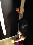 玄関の扉ののぞき穴のところから光が入ってきて、リビングのドアに反射していました