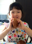 食後、ママが買ったソフトクリームをどうせ食べないだろうと思って「どうぞ」とあげると一口ぺろっとしたところ、とうとうアイスの美味しさに気付いてしまったようです。