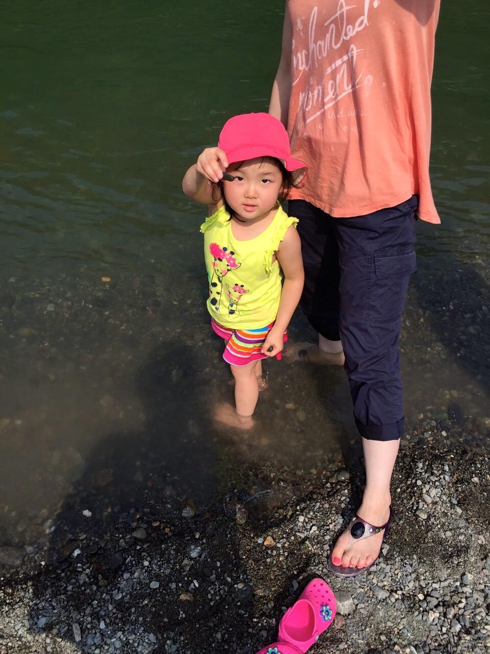 船を下りてからの水遊びのほうが断然楽しそうでした✨きれいな石を探したり、後半は服のまま水につかって気持ち良さそうでした。お昼をだいぶ過ぎているのにお腹は空いていないようで「もっとあそびたい〜!」と川から引き上げるのがなかなか大変でした