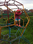 曇り空でいつもよりは涼しかったので、少しならまあいいか、と遊んで行くことにしました。球型のジャングルジム(?)にどんどん登るこのちゃん。相変わらずこわいもの知らずで...しまいには靴を抜いて裸足で遊び始めました!いいよ〜思いっきり遊んでくれ〜