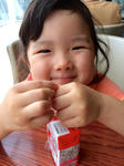 泣いてるところをパパから抱っこを交代し「りんごジュースを飲みに行こうか」という一言で何とかおさまりました。タリーズではこの笑顔〜✨