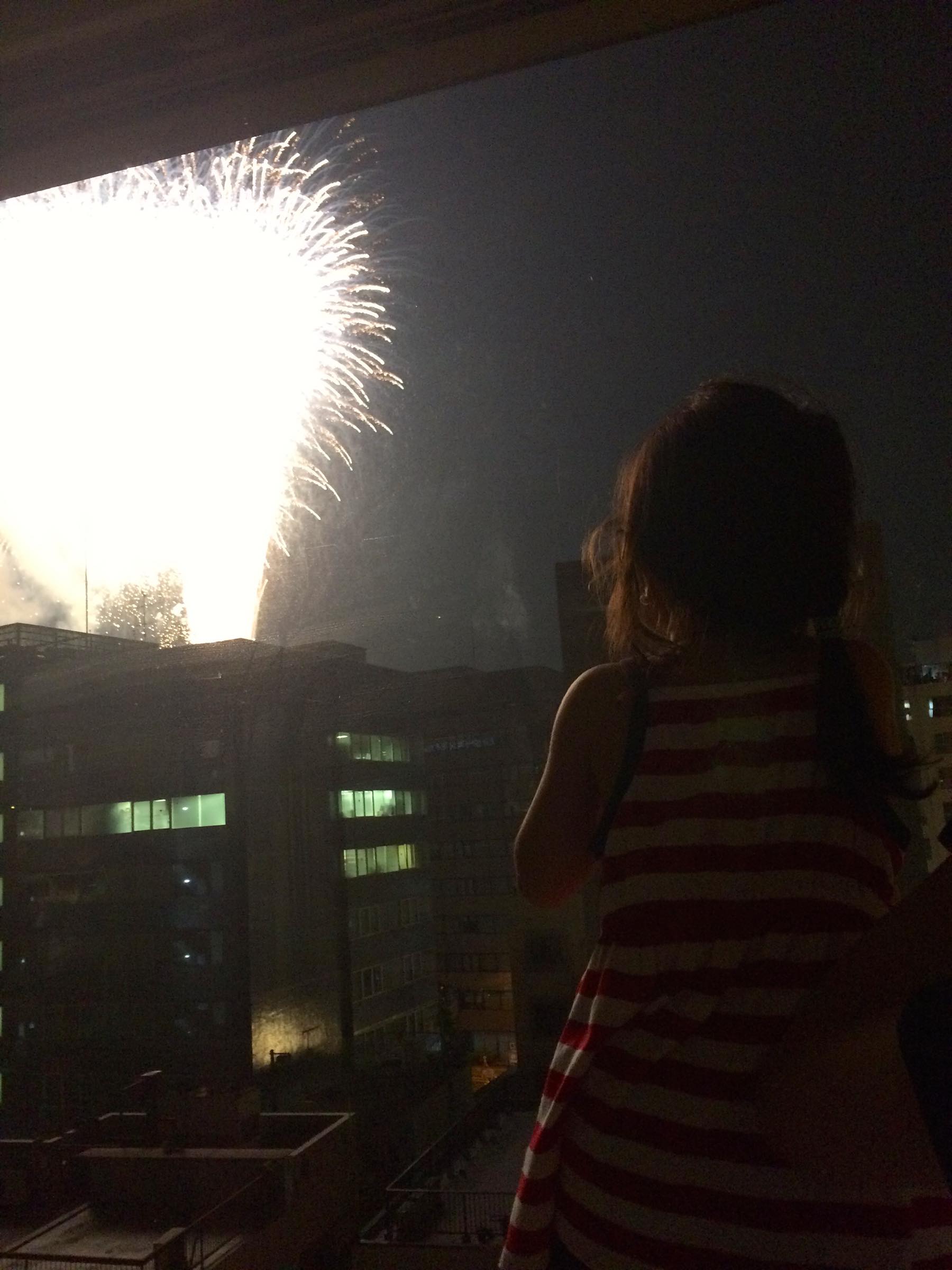 隅田川の花火大会に行ってきました。ママの会社の人の家からみえるというので毎年招待してもらっています(今年で2回目)。近くで大きくみえて音もよく響くので、このちゃんは大喜びで興奮しながら部屋をきゃーきゃー言いながら行き来していました。