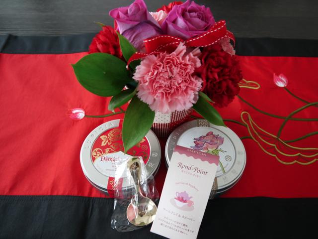 かわいい鉢に入ったカーネーションとルピシアのセット。