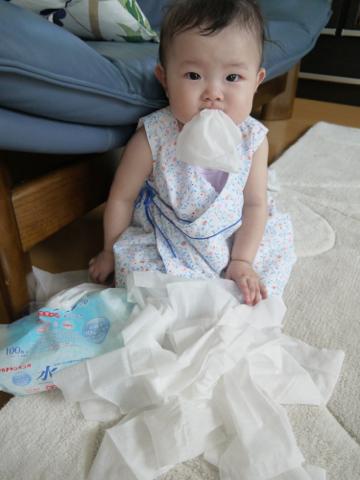ぱっと振り返ったらおしりふきの山が...楽しいのねぇ。