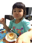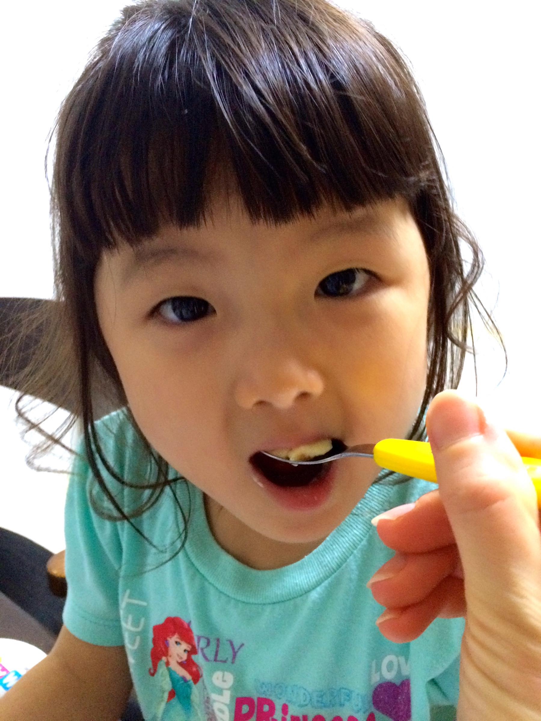 前は見ただけで嫌がっていたけれど「カラメルソースが甘くておいしいよ〜」と誘ってみると一口食べてくれました。味はやっぱりあまり好きではないみたいでそれ以上は進めても食べてくれなかったけれど、口の周りが赤くなることはなく特に発疹も出ることはありませんでした。次は半分くらい食べてくれるようになるといいなぁ。