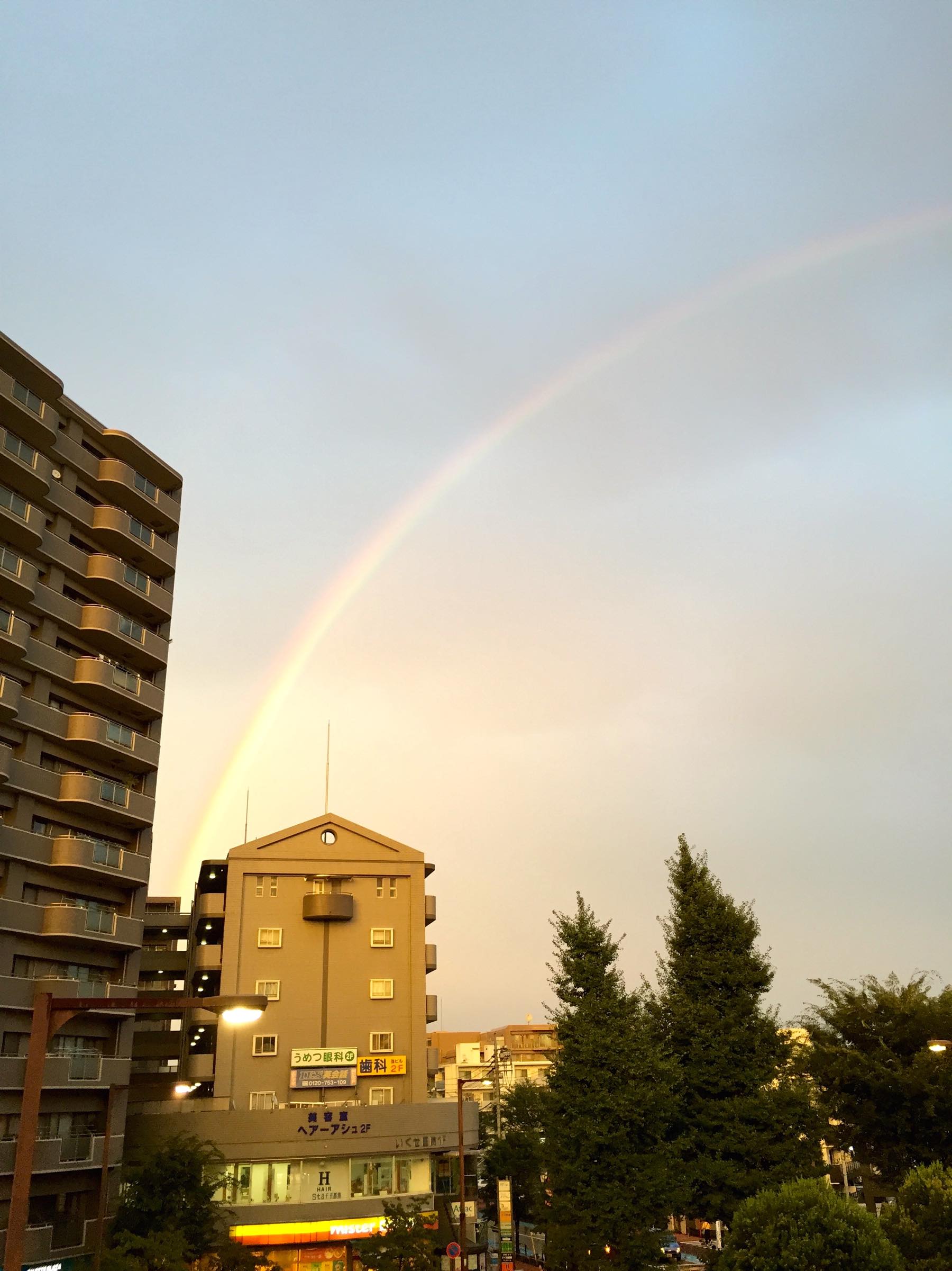 きょうは急いで帰りの支度をして外に出てきたらまだ空に虹があって何とか見ることができました。