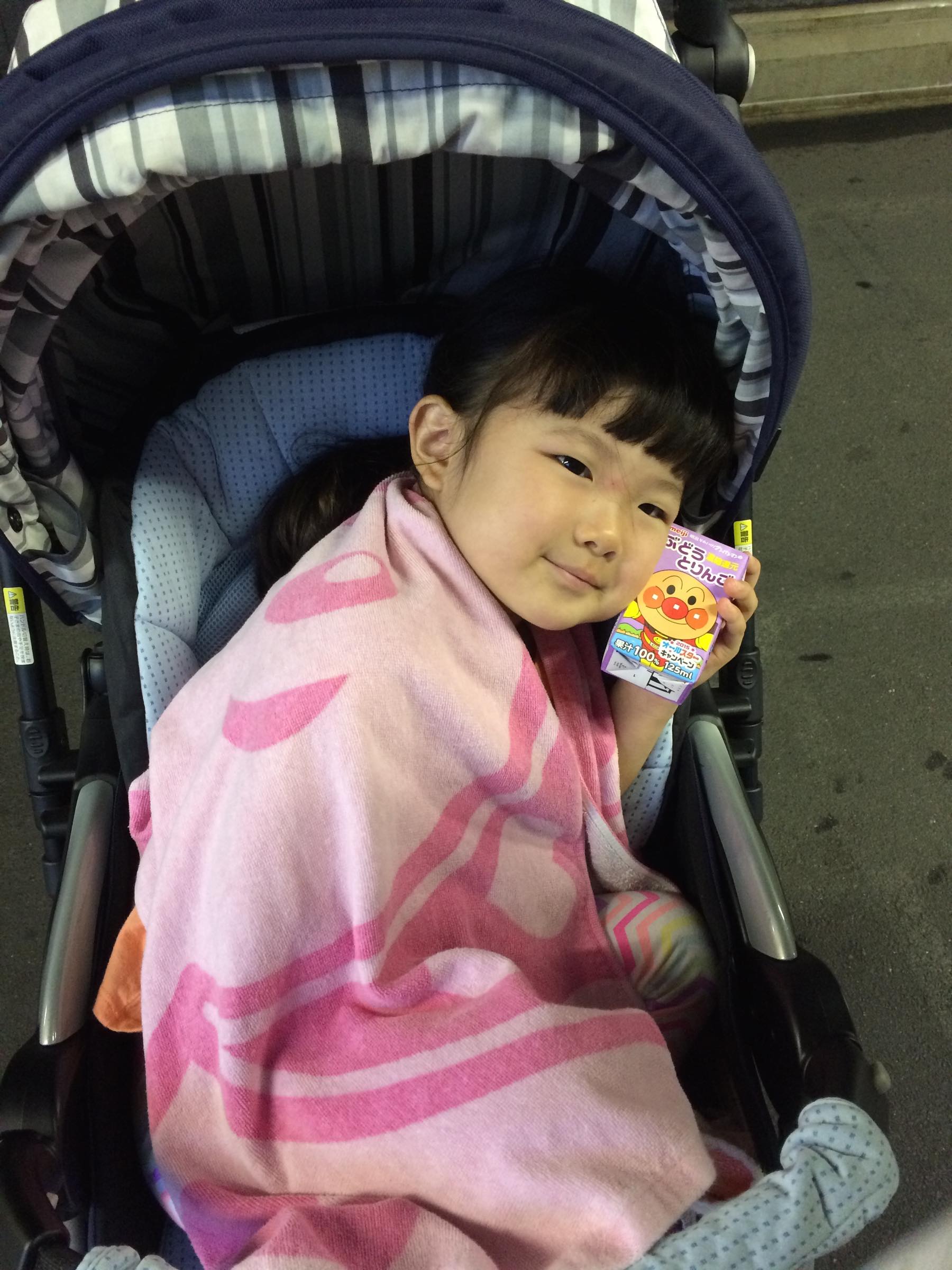 初日はこれでお終い、ホテルに戻るころにはこのちゃんはすっかり疲れて寝てしまいました。大人も雨のなかを1日中歩き回ったのでぐったりです。。。まだ明日もあるのでがんばらないと!!!