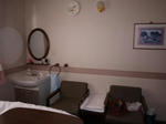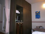 ベッドの横にはクローゼットとテレビ、冷蔵庫。