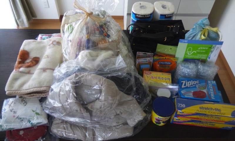 洋服とかダイパーケーキ、おもちゃなど。